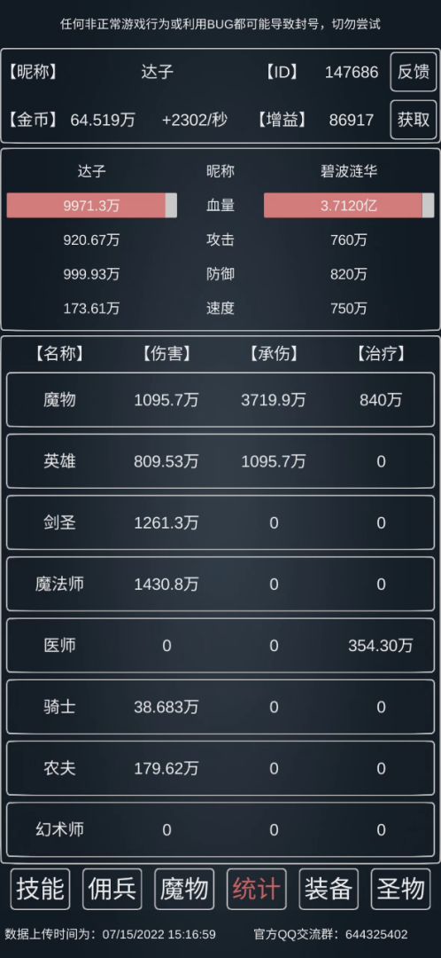 15w血,19.8w防,23w攻,5速,武器得点10,其他看着来,因为新增了个独狼之志,所以1秒勇者需要的时间会更快(应该)