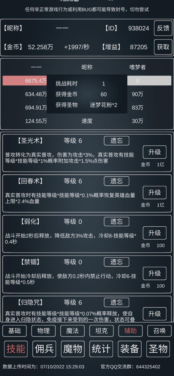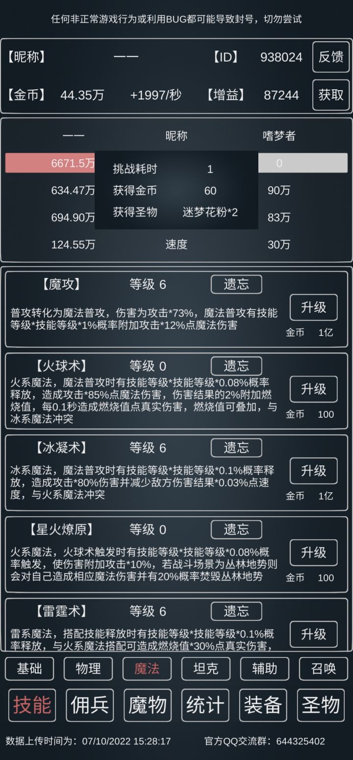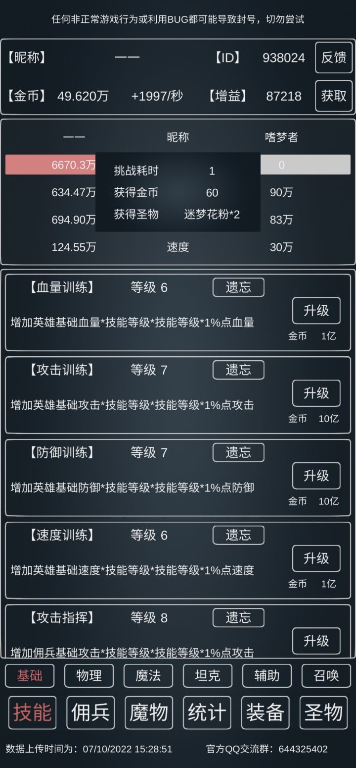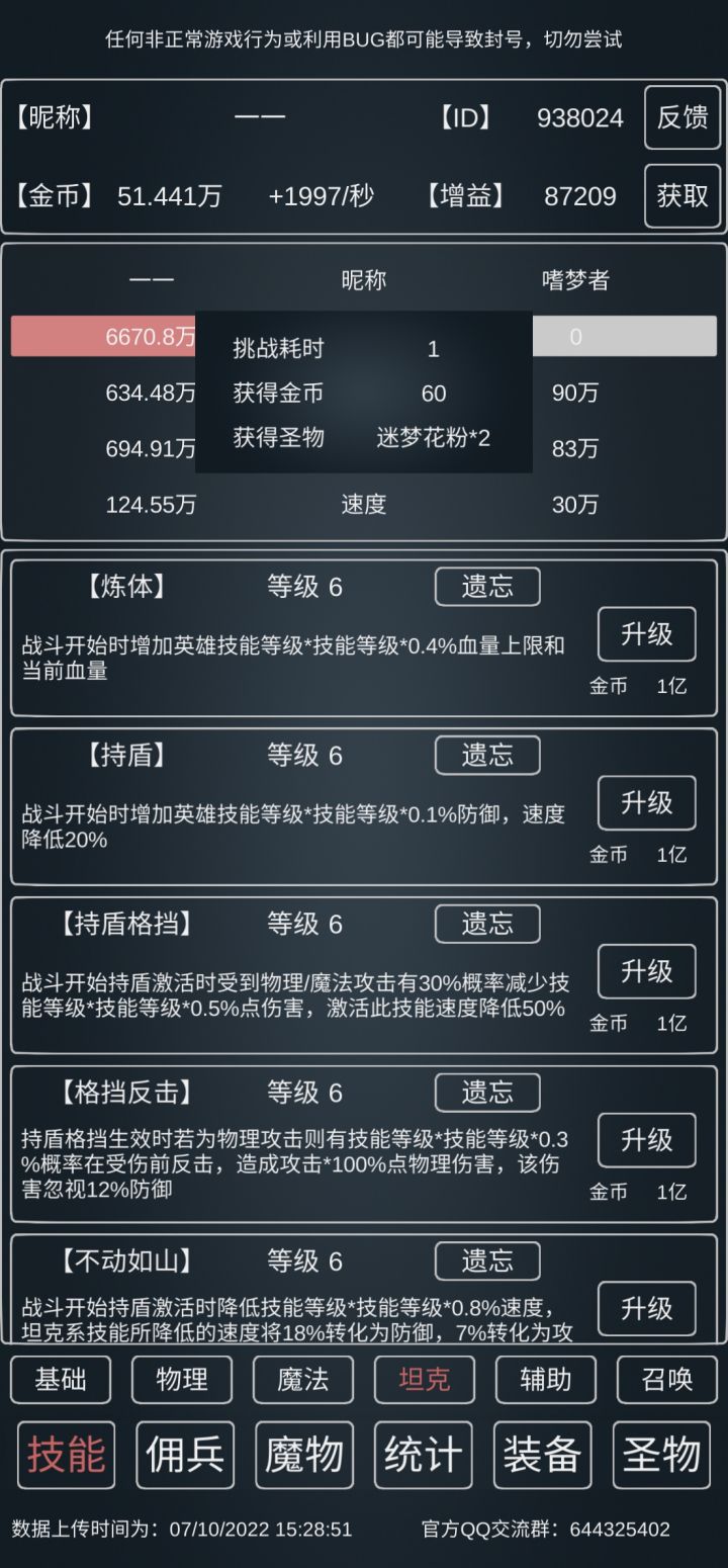 理论上随着攻击提高,可以大幅降低对防御的需求,不一定非要挂到690w+。😂😂(楼主最近挂暗元素去了,攻击落后了一点点,所以不动如山点了7级。)