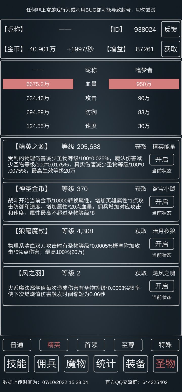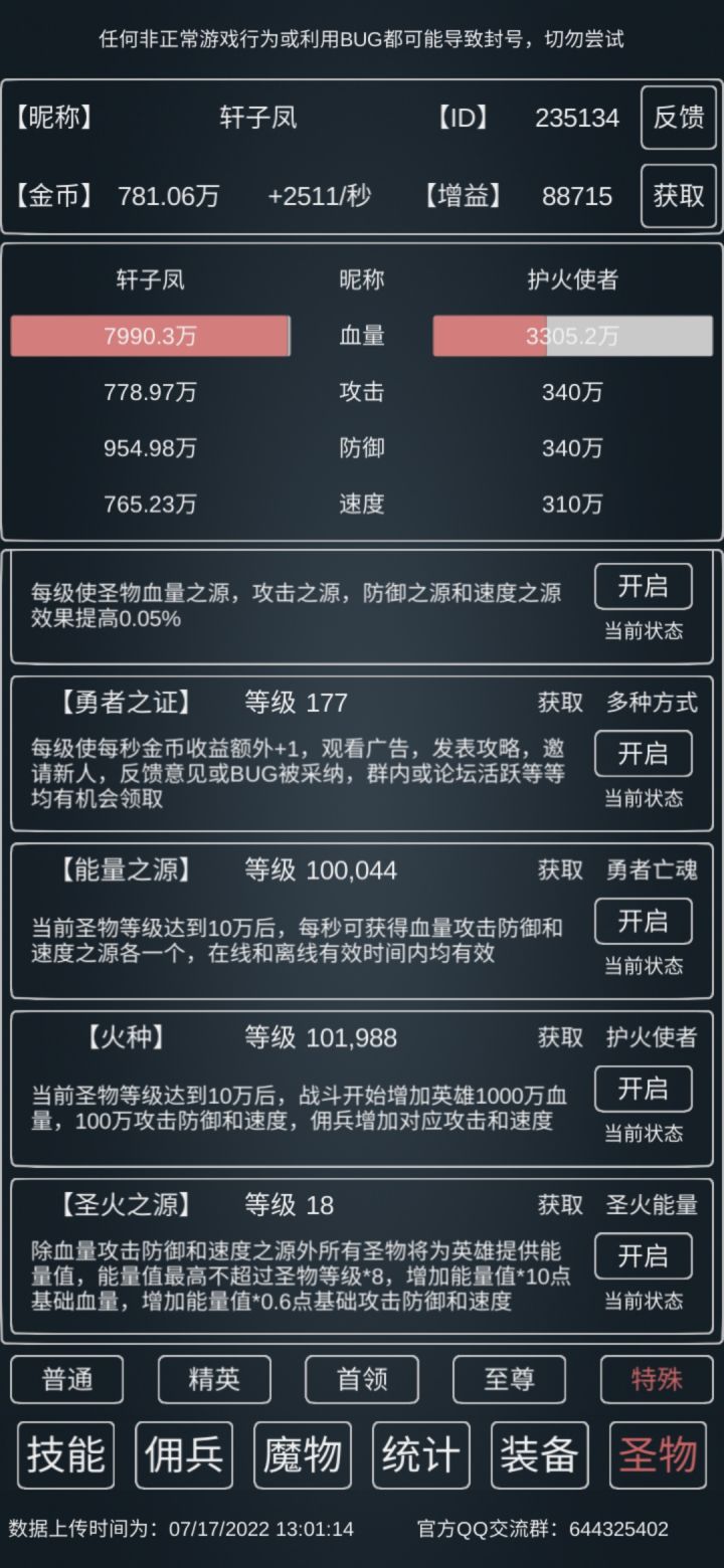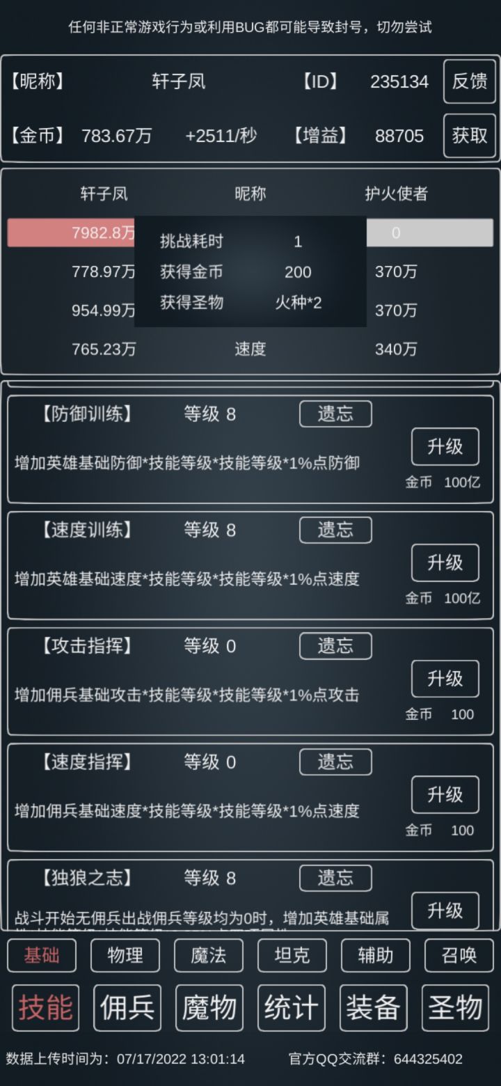 15w血,19.8w防,23w攻,5速,武器得点10,其他看着来,因为新增了个独狼之志,所以1秒勇者需要的时间会更快(应该)