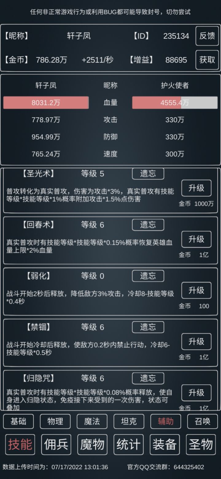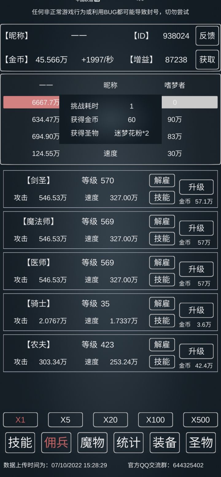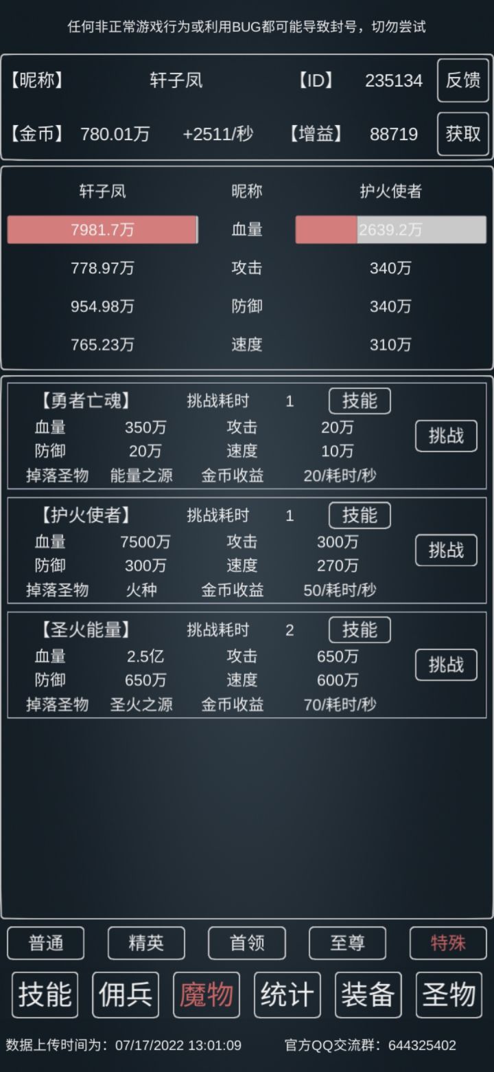 15w血,19.8w防,23w攻,5速,武器得点10,其他看着来,因为新增了个独狼之志,所以1秒勇者需要的时间会更快(应该)
