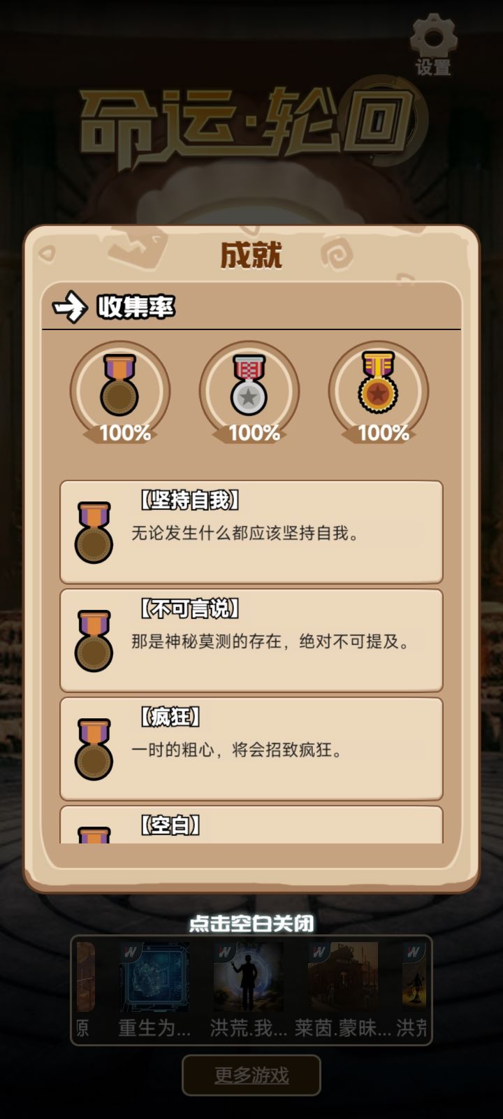 emmm,感觉还是有点意思的,但流程流程似乎有点简单,要是多点剧情就好了。而且居然没看到其他帖子,有点惊到我了。玩了大概半小时,金牌已经集全了,银牌和铜牌还差一点,不知道是不是已经算过了真结局?