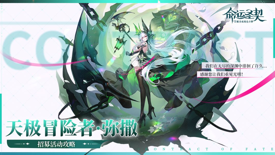 危险又诱人的存在—— 全新极夜天极冒险者「爱蜜莉」即将登场! 技能解读 ▽ 技能展示 ▽ ——循命运印记,赴百媚之约—— >>>更多福利欢迎关注其他社区 ● 官方公众号:前往微信搜索《命运圣契》 ● 官方抖音: ● 攻略站: ● 加入团长聚集地QQ群:729101139 ▷▷▷您有任何的想法和建议也可以扫码前往TapTap《命运圣契》评价区告知我们喔~ ▷▷▷点击下方标签即可下载《命运圣契》