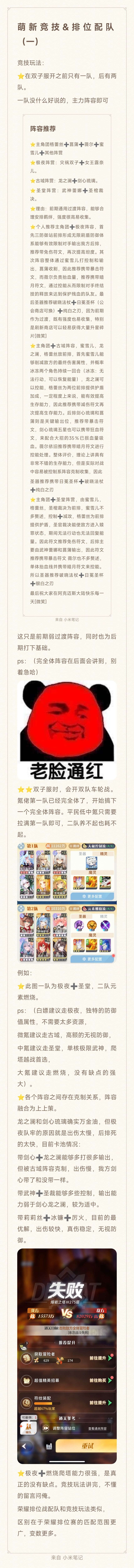 大家好,我是来自S7的火毛毛。ID:17501007 在发攻略之前,先装一波,展现一下实力,好让我的攻略有一点说服力 虽然对面多多少少都有虚战,但是不走歪路的火烧阵容,再后期还是很有前途的。 现在开始正文,今天内容分为两大部分,第一部分阵容选择(开荒,前期,中期,后期),第二部分是硬件的选择 第一部分:阵容选择(开荒,前期,中期,后期) 开荒期没什么好说的,无脑主角团就行。 抽卡心愿建议放莉莉丝和