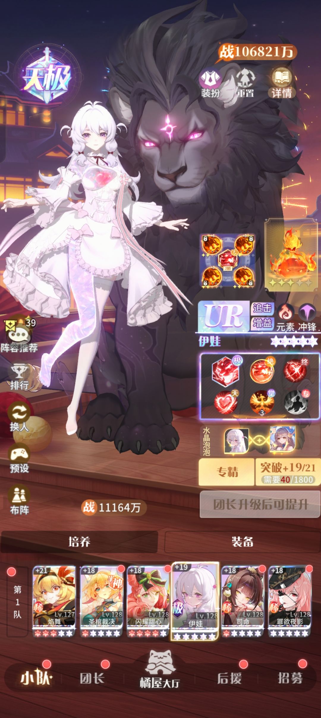 1队赤霄阵容 赤霄,游玲,剑心 龙女,司命,神拳或者伊娃(新卡) 圣器:天极圣器,圣杯,琴,血斩,纯白,命运 魔灵:福临,狐狸,炎龙 专属赤霄3>游玲2>龙女2>剑心2>司命2>伊娃3或者新卡 符文:闪避,抗性,最终伤害 秘宝:夜之心2星,夜之华3星,夜之鸢2星,夜之典3星 半神:剑心ur1>龙女ur1 福利罐子看个人。。。。 2队爱蜜莉阵容 爱蜜,罪欲,梦寐 弥撒,女王,双子或者三姝(新卡) 圣