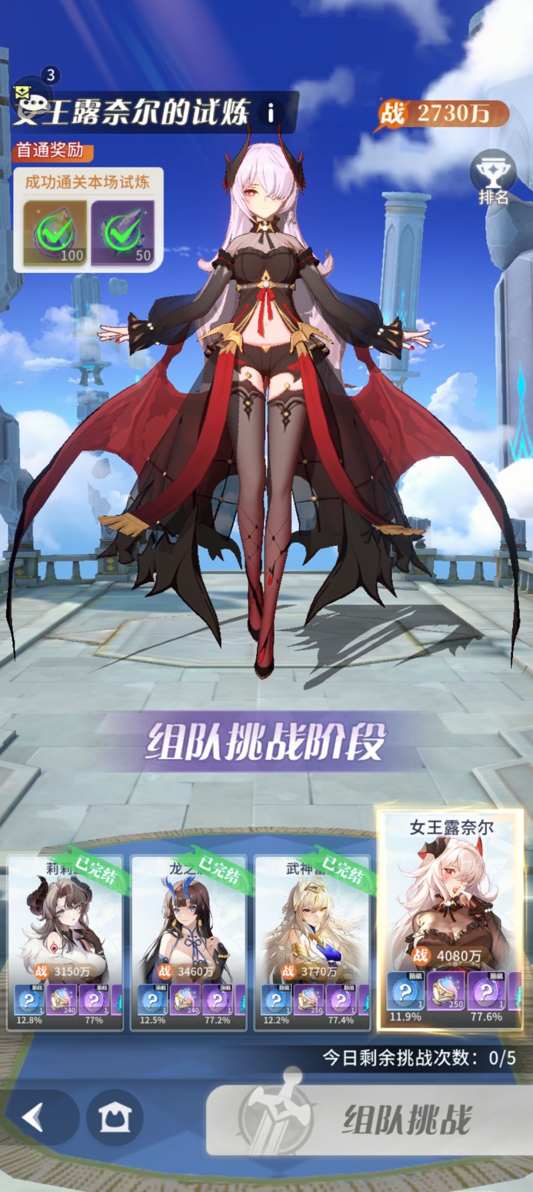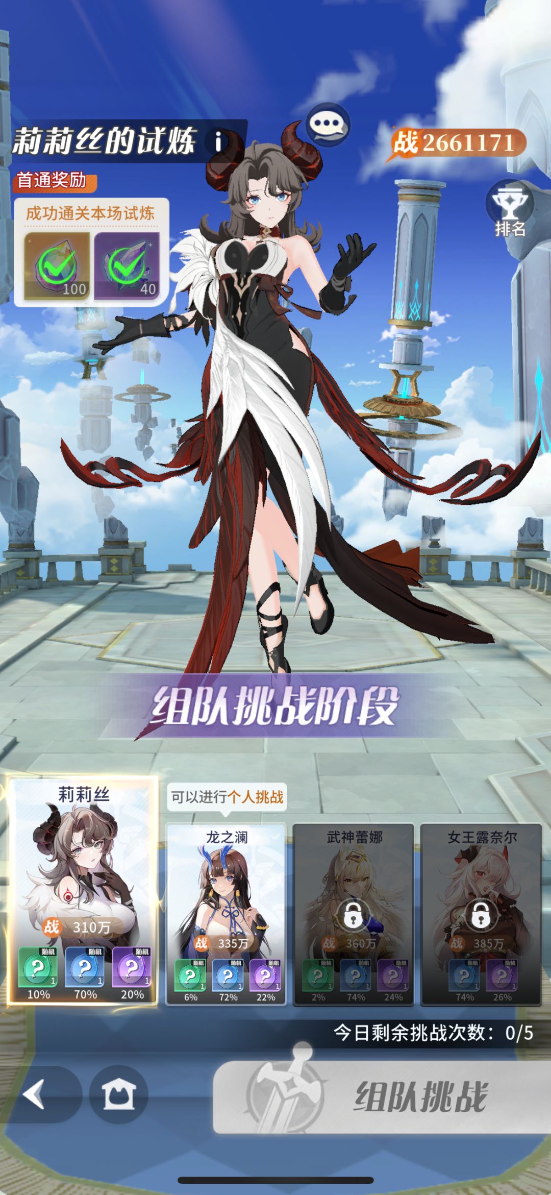 女巫猎魔人影遁+武神圣棺弥撒灵活组合可应对90%情况,本想着继续用三张SSR5实在太难凹,这三张如果尽早到UR5过关会更容易。 实际战力非第一张图,而是第二张图的三队战力之和才是标准,第一张图的战力在小队界面更换人物也就随之改变……