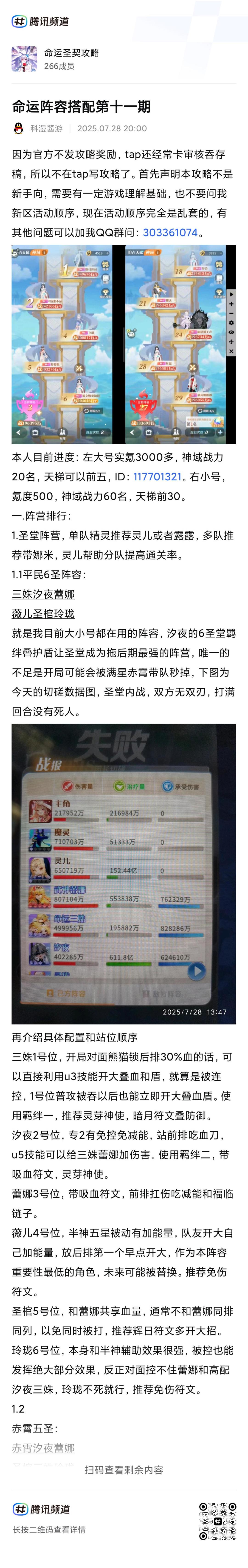 #攻略投稿6 #攻略征集6 #命运圣契 #游戏日常 #浅评一下 我是S49区的华晨宇 我的ID是226801049 新手前期阵容推荐: 蜜雪儿+剑心琉璃+龙之澜+女仆+菖蒲+哞哞号手。(主养剑心,剑心拉到ur1就行了,普通池挂心愿剑心琉璃和龙之澜,每天抽一个,因为成长之路有一天内出两个心愿的任务,把券留着,自选也留着,等梦魅和灵珑出了,进自选后拉到UR1白嫖专属符文) 第30天抽灵珑换下女仆