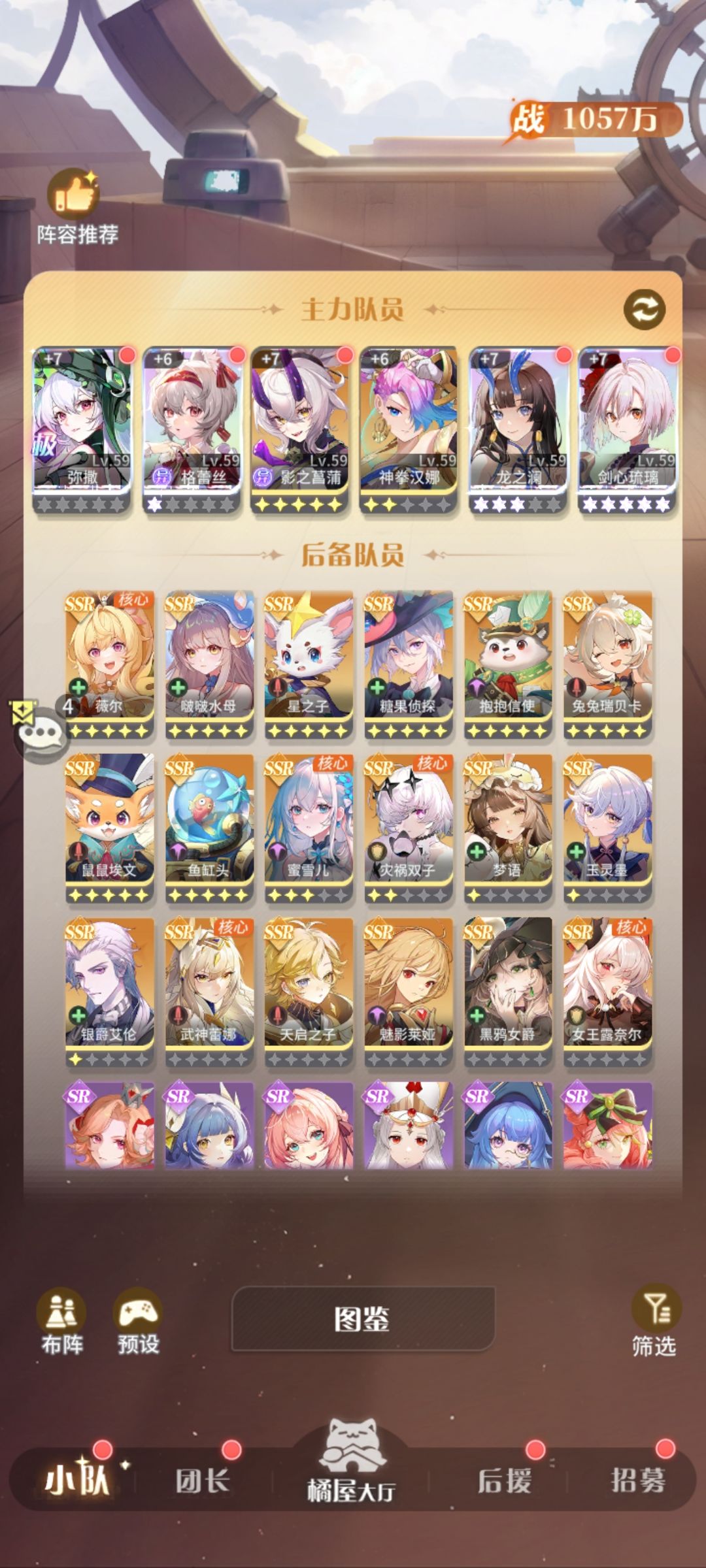 id:7801118 首先说明一点 本篇养成需万氪起步,达到最佳效果需两万以上,所以平民绕道。 主要氪点:三姝u5 3000+,专属10个左右 3000+,每日21 加四卡 3000+,以上1w是起步价,其余弥撒、半神、魔灵(狐狸 熊猫)、圣器(琴)、精灵(露露)、密保、星魂等就不列了,保底也得1w才能见效。 配队如图,占位可以自由调整。三姝使用玫瑰羁绊,输出最高,舍弃双子 圣棺羁绊。 上阵6人都