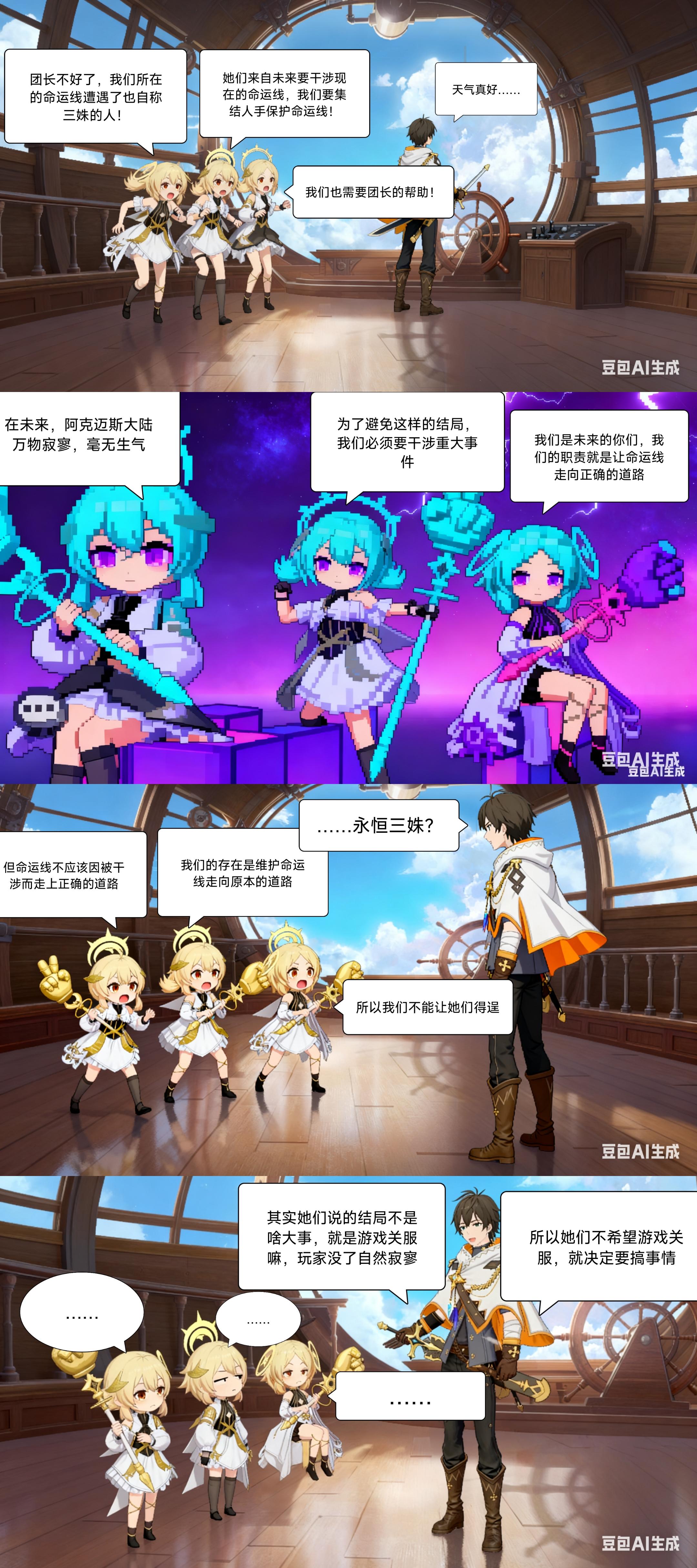 说不定以后会出其他命运线的冒险者,我自己有点想法:比如说不是向往天空而是向往探秘的焰舞,在探索遗迹中得到了比火焰力量更强大的熔岩力量(然后落在游戏里就成了游铃锤子赤霄都无法针对的存在,最终在六天极被解放后和梦魅一样安然退休)。团长ID:218201024#漫画脑洞共创