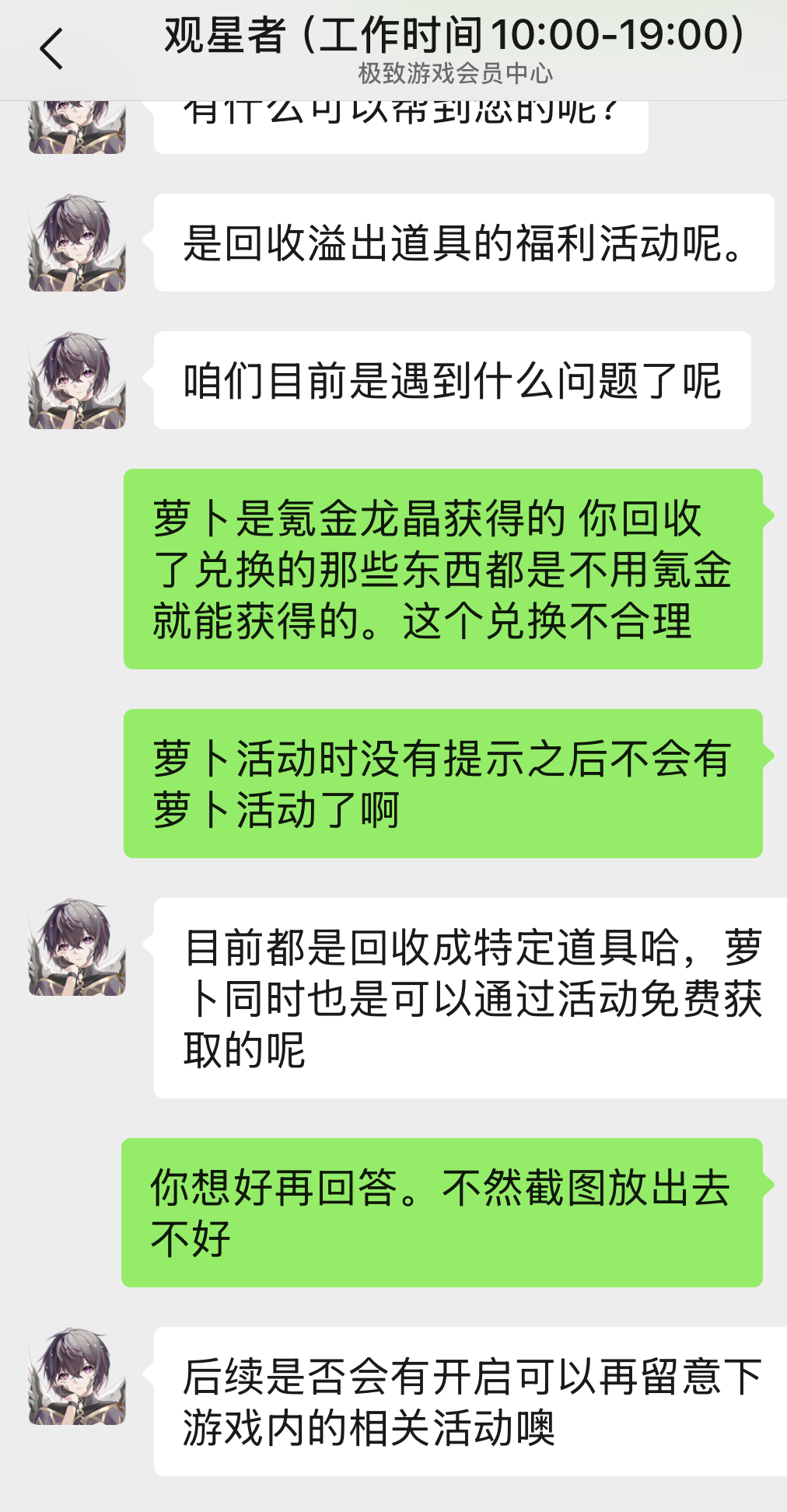 大家参与度高的活动通通取消:比如全民囤囤 萝卜农场 半神或者抽新天极可以选旧天极。那些大家吐槽多的活动还固定出。不就是要钱嘛,你把萝卜农场卖贵点不就好了