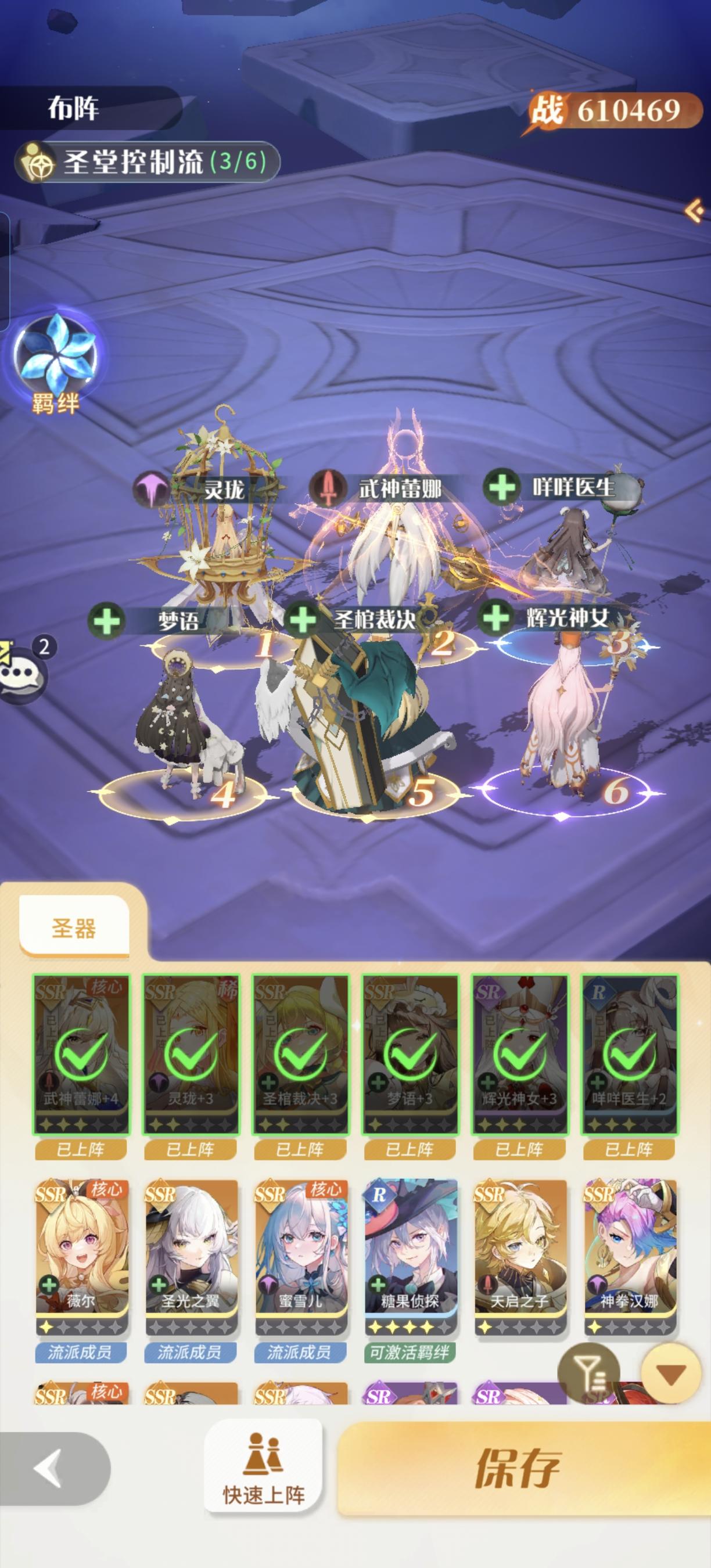 听说圣光辣鸡就把圣光下了,目前这个阵容OK吗?还是该怎样搭配?布阵这样布行不?然后现在有差不多3W钻,要存起来给后面的活动吗?还有这个油烟瑞贝卡要不要抽呀?都不懂#命运圣契