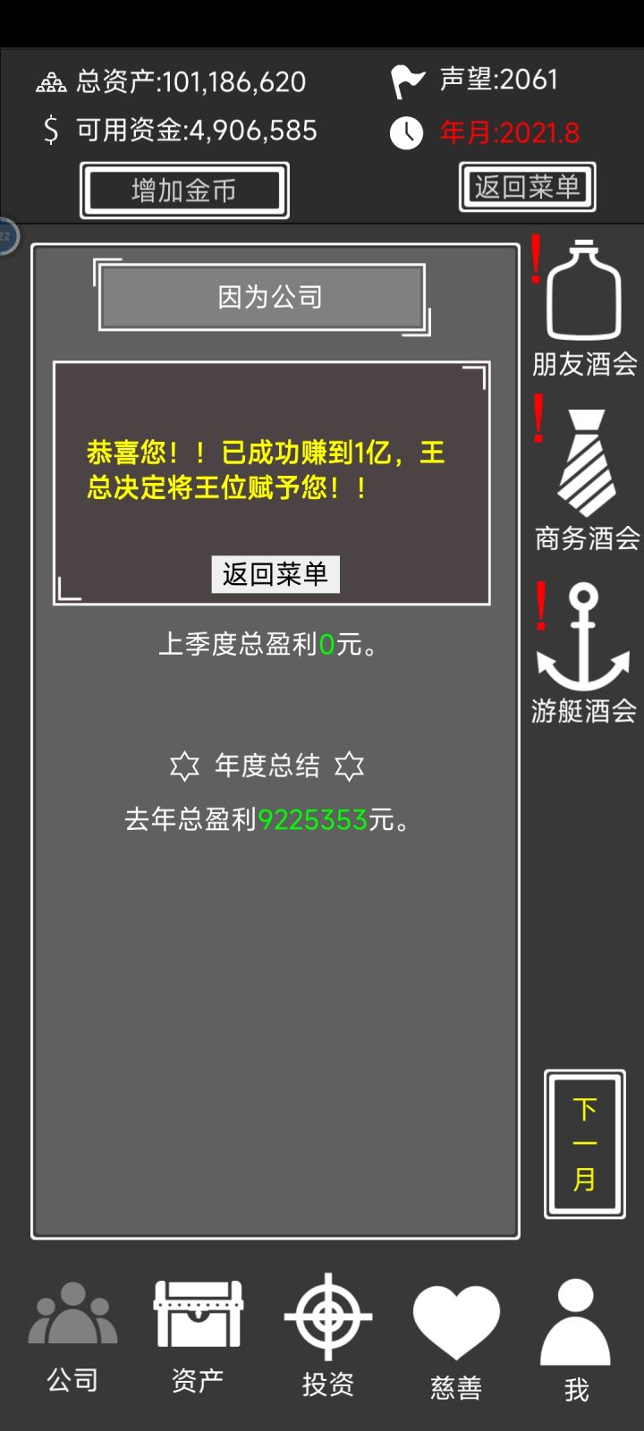 投资毫无操作性,游戏节奏无聊且慢