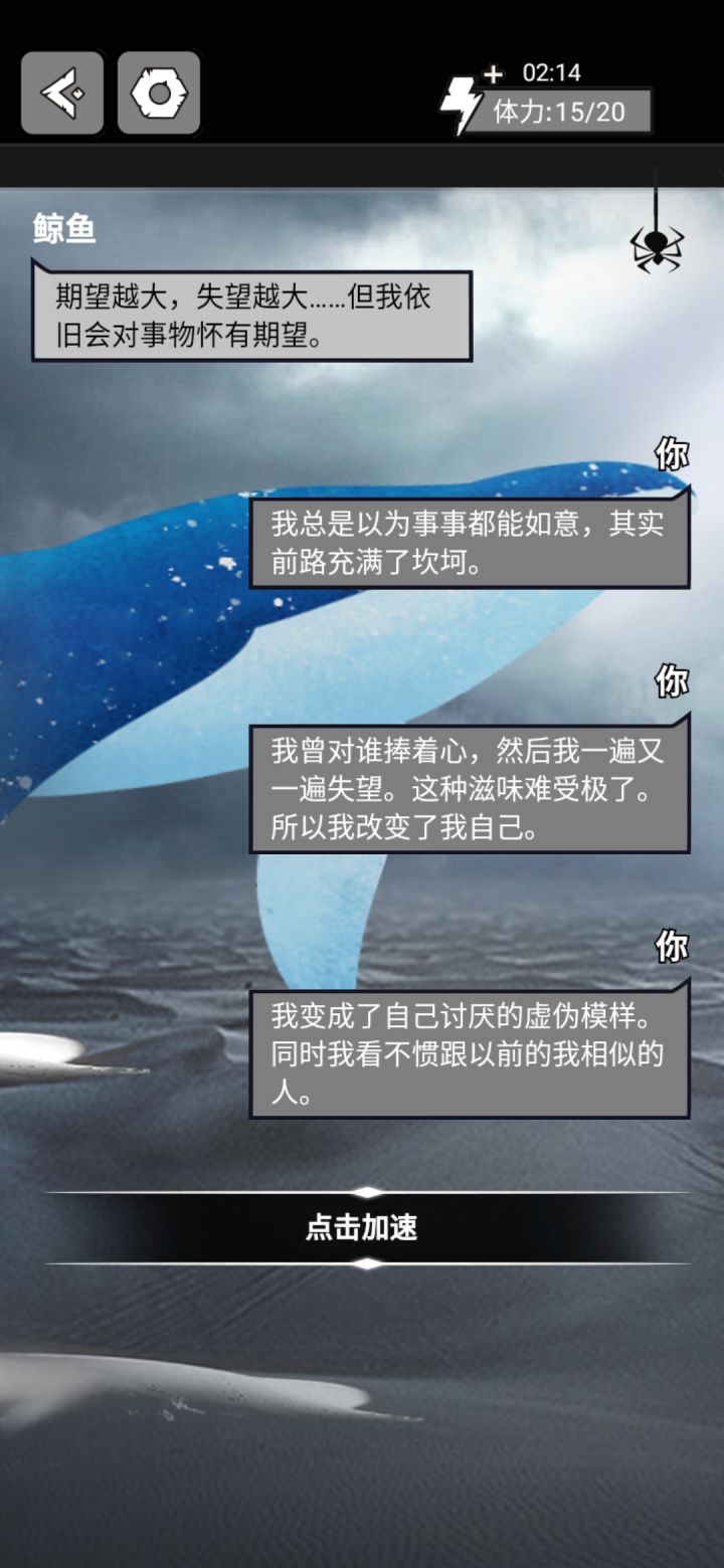 很值得深思的游戏,所有的结局都能带动着一部分真相,在【毫发无伤】结局中映射着挑选者的话语,他仿佛是另一头抵达过海洋的失去了《目标》的鲸鱼