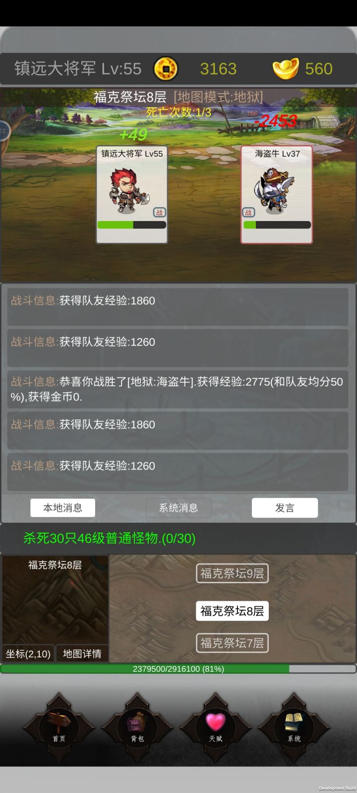 不知道是BUG还是每天金币上限,现在打怪不给金币了,刚玩两个小时,先写这么多