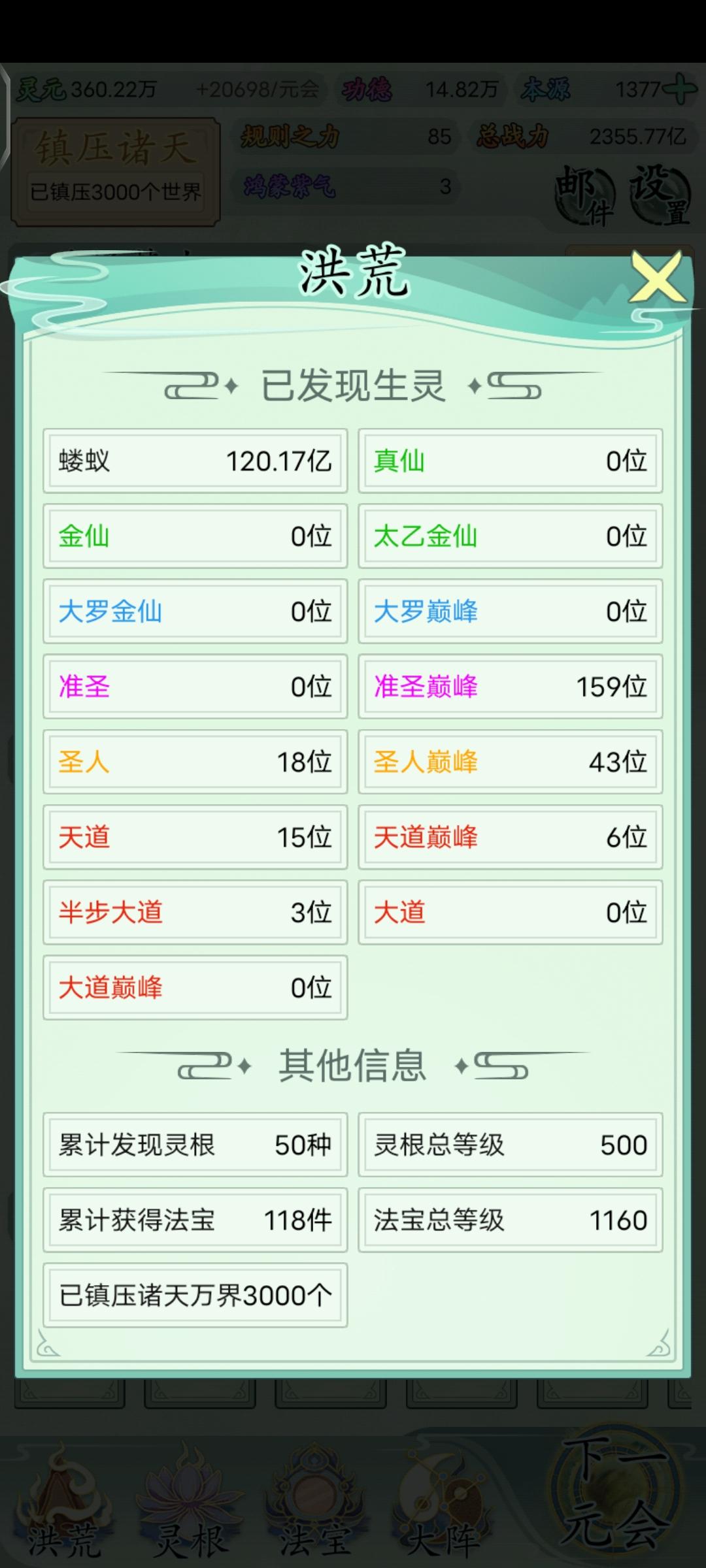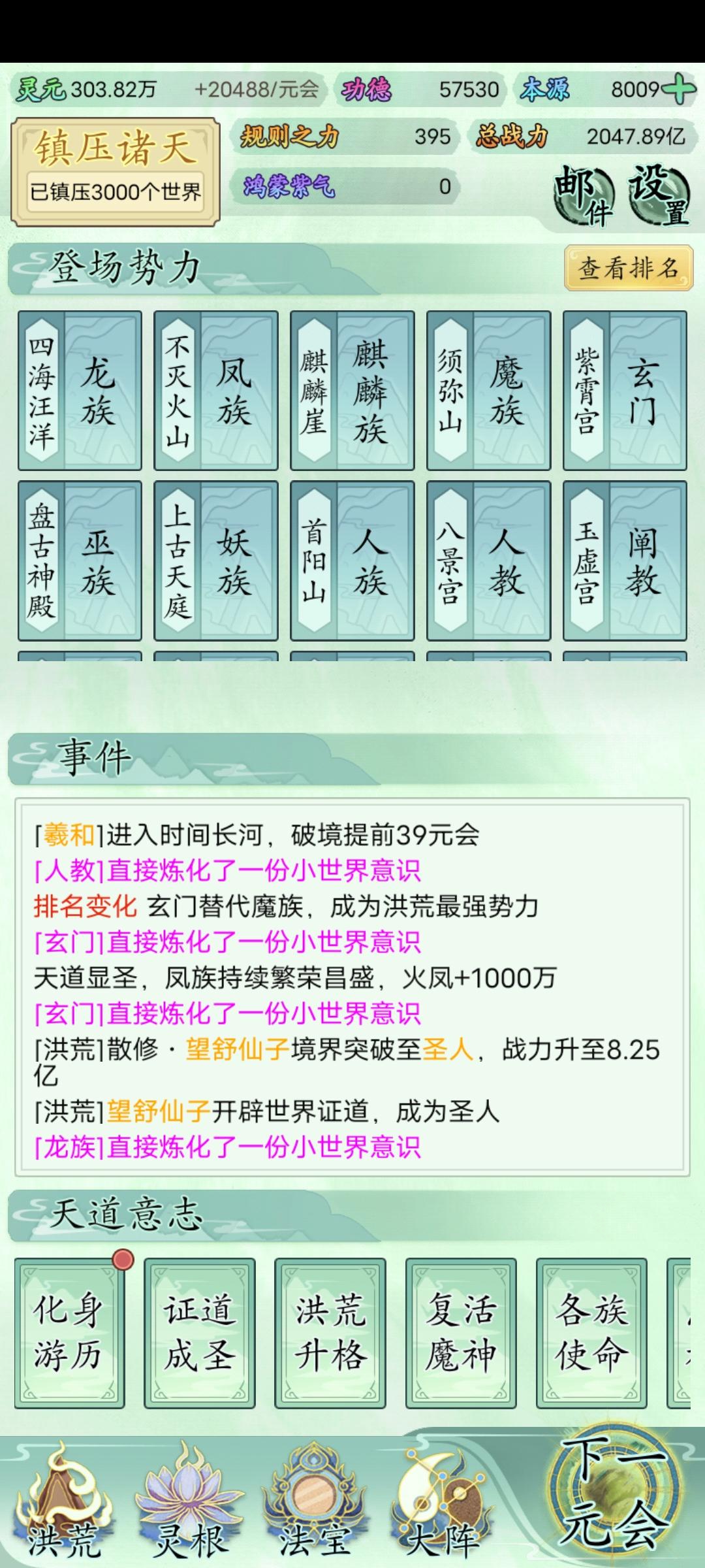 2)虽然玩家扮演的是洪荒天道,但是本质上感觉跟培养门派弟子来说区别不是很大。每元会需要处理的时间基本上都差不多,就是处理上面说过的那些事件。