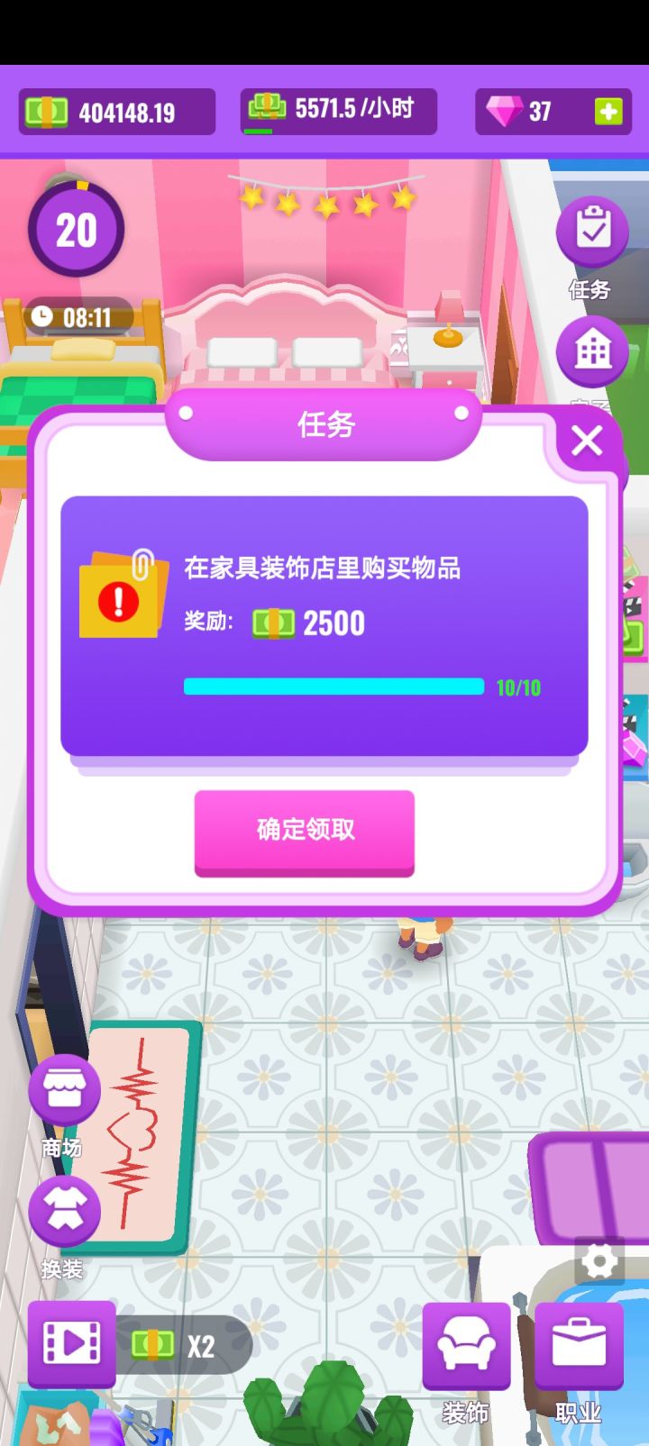还是挺不错的,挺好玩的,一个下午就把四个房型全都买完了,疯狂刷广告……但是bug还是太多了,前面说bug和希望改进的地方,后面夸夸优点(我不太会夸,可能夸的比较少)