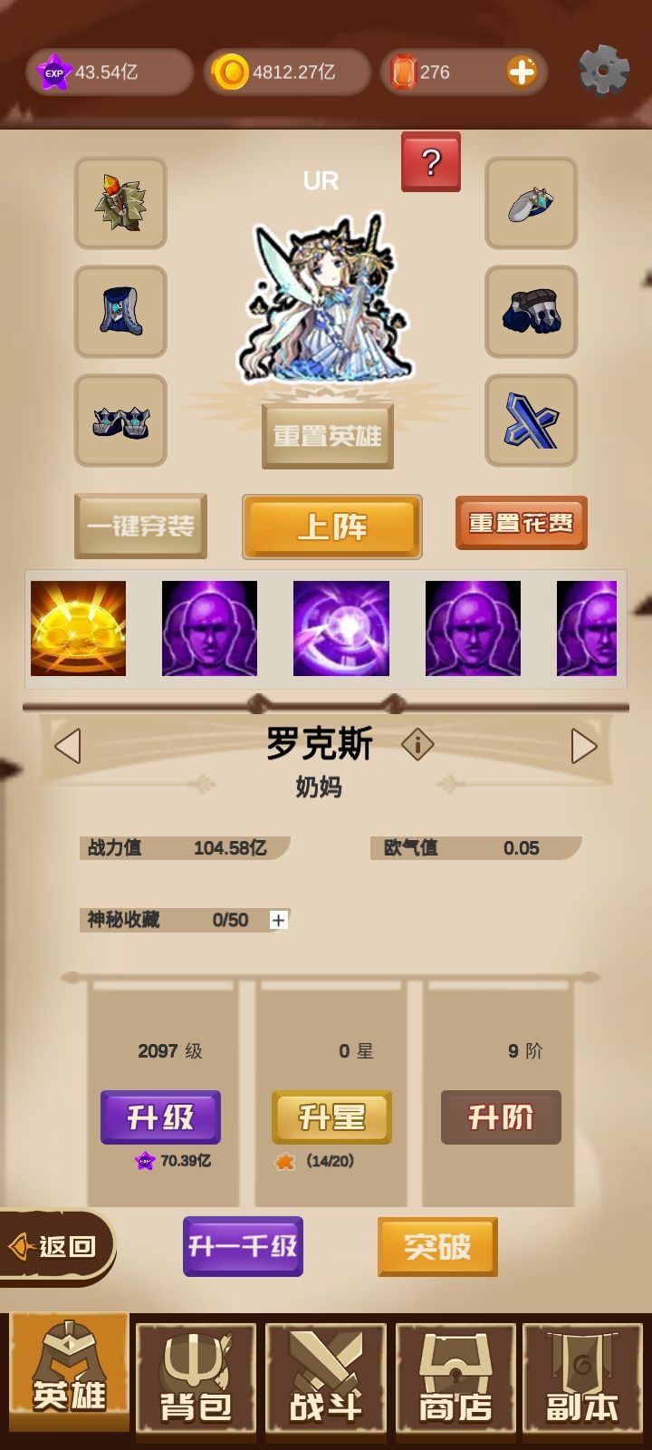 不管作者人品如何。发个攻略还是有必要的。爆肝1-2天打到目前最好装备。最好技能。大约400-500关。休闲玩法。随意。首先,游戏还是有很多优点的。缺点是策划不会把很多规则写明白。让玩家走弯路。本攻略主要解释次游戏潜规则。(不一定完整)潜规则1,穿满装备可以升阶,继续穿下一阶段装备。目前共计八阶。每一次升阶都会增加50%全属性。重点:你升到一万级,升八阶。加成就是8次50%累计叠加。你每50级换