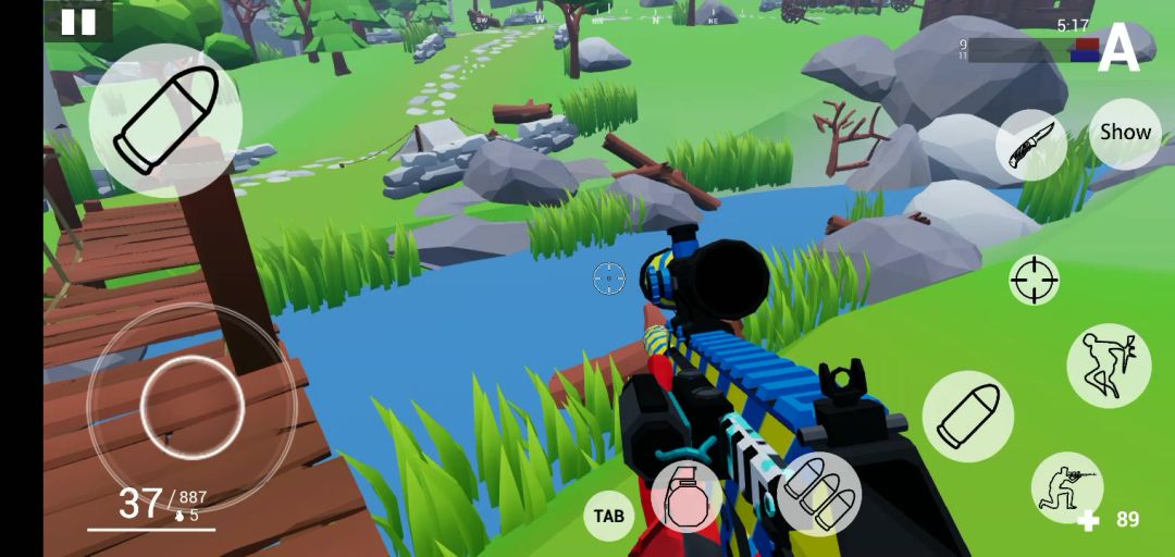 玩的时候可以用这把枪跳到很高的地方,俯视全图直接无敌