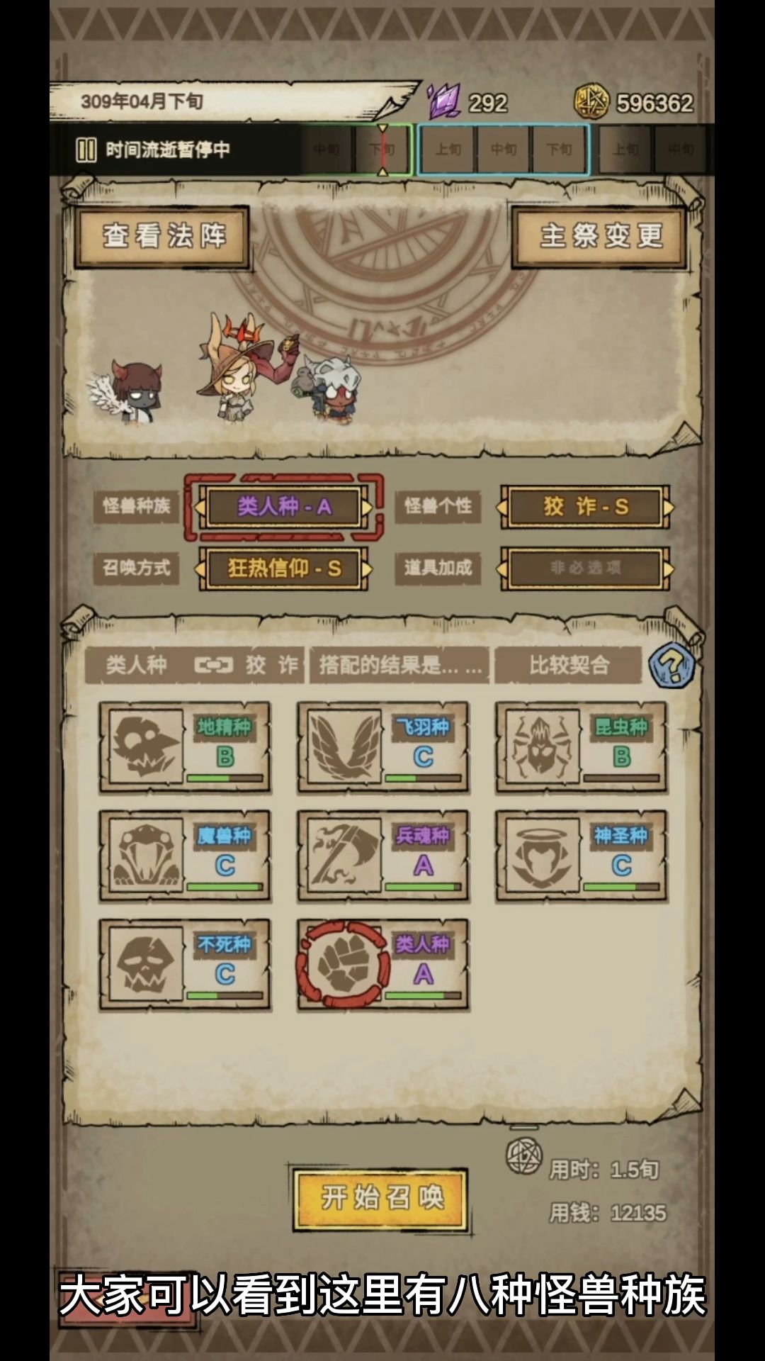 我玩了大概两天 新手先优先练一下魔兽种族。比较强一点。 后面十个种族集齐的话,魔兽,恶魔,飞羽,神圣,迦娜都可以用,也比较强一点。基本上不用撤退!疯狂召唤,然后去推图。就是比较费广告😂 然后就是对应的裂缝就有对应的次元突变体,有概率的。还有就是他可能只能拥有一个突变体,一定要观察完,看清楚再去对应的种族还有对应的完美契合的特性去召唤。 还有魔王魔使,这个要对应的钥匙才能转换,就是说你要在那个魔神大会上把所有门的好感度刷,还有一个是在秘商店那里购买。好像要66666 还有一件事, 一定要搞个汲魂龙爪。打兔子的时候不要上强力的角色。上点垃圾就好。反正上下左右都要死😏。打到一定程度有一个宝箱,把宝箱打开,然后点击炸弹就可以获得胜利。 #魔神大人在召唤#