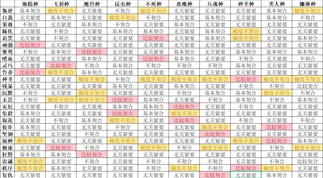 性格契合攻略集合。写上已经知道的 契合分为完美 比较 基本 无所谓 不契合 极度不契合 目前只收录比较契合以上的。 已知道的我会发出来 欢迎大家发出来自己知道的比较契合 和完美契合 我会整合。 目前 昆虫 比较契合:集群 魔兽 比较契合:狂野 地精 比较契合:顽强 完美契合:贪婪 在商店6.6万购买。另外我百搭了一下 贪婪配任何种族好像都是比较契合 完美契合 地精种-贪婪 飞羽种-嫉妒 昆虫种-纵欲 魔兽种-暴食 类人种-傲慢 不死种-暴怒 兵魂种-懒惰 需要每次颁奖去魔神殿堂里接任务 获得钥匙开性格 搬运。