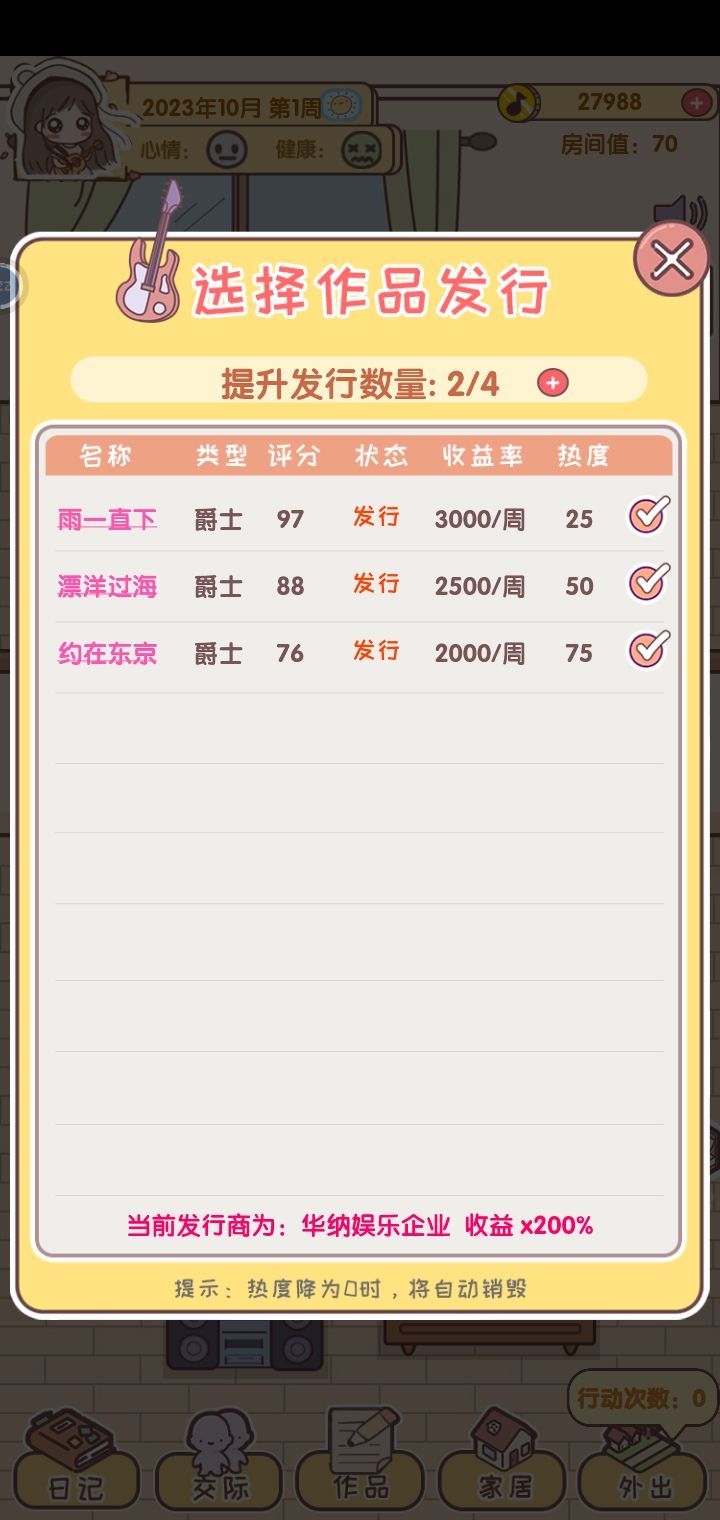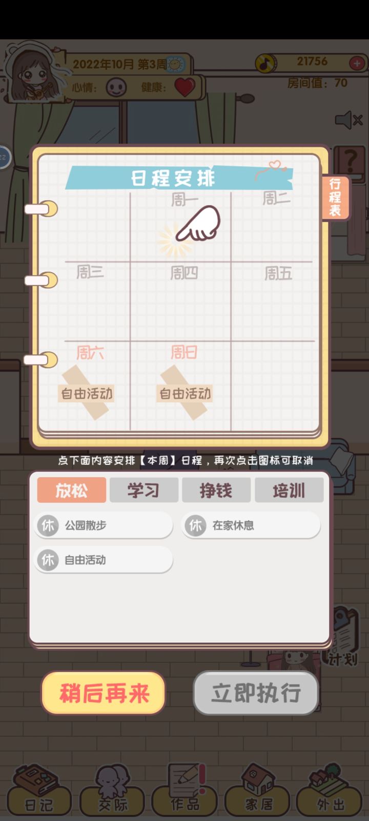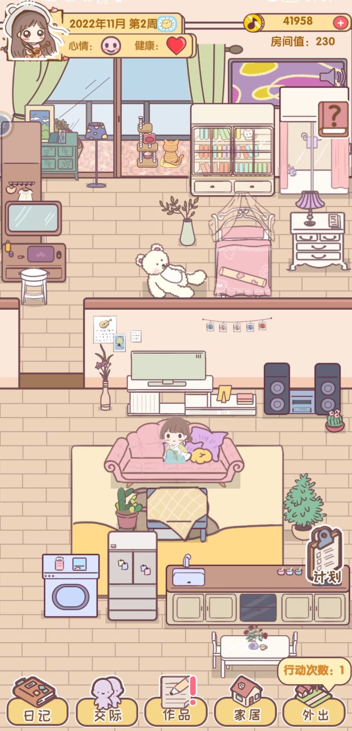 而且一天只能出去一次(希望出去的次数可以增加),公园哪里猫的好感已经100了,也被我带回家养了,可以在弄一个新的了!放松板块太少了,压力这些却很容易高,真的服了