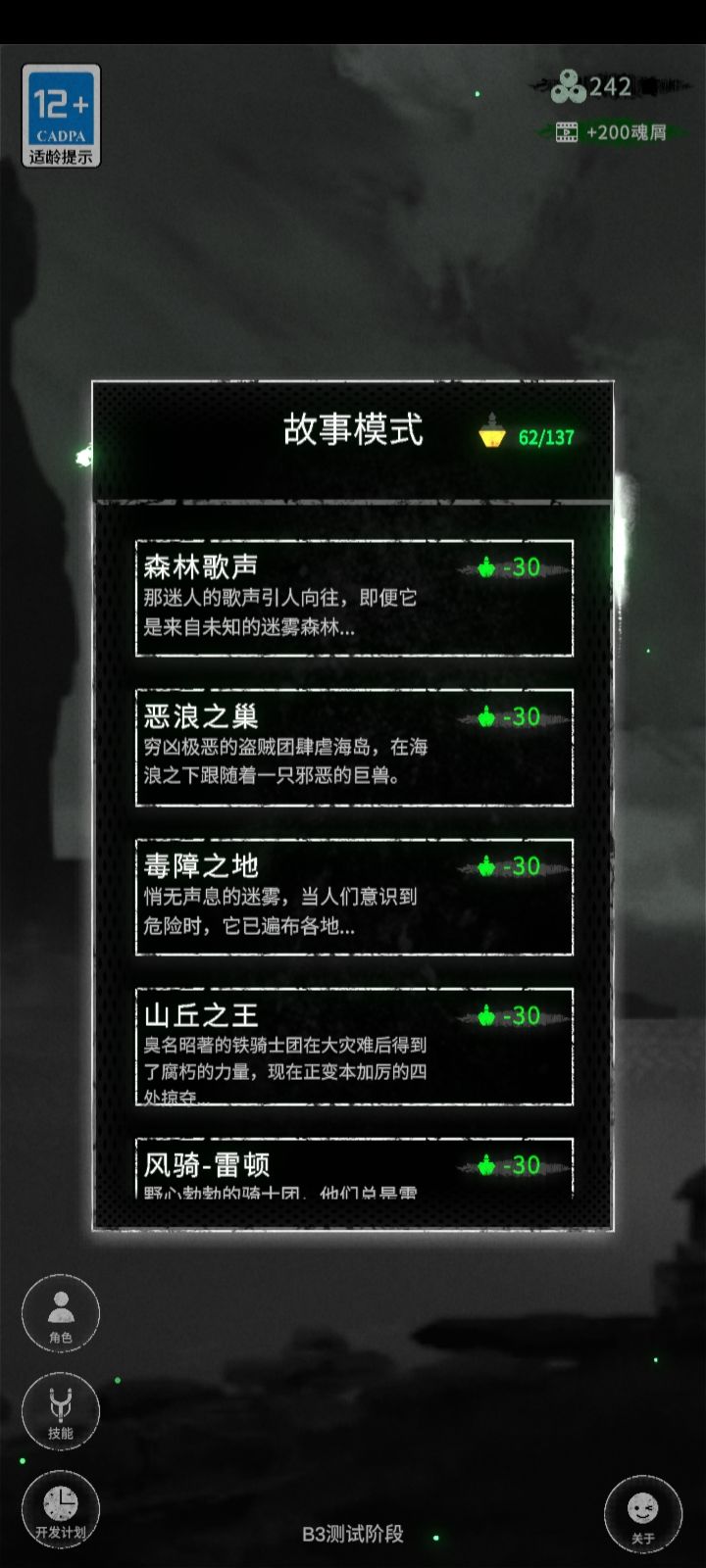 魔女+生命之息+格斗 可以过完全章并且不需要加属性。技能搭配则是魔女的所有金技能+紫技能+两个生命之息的金技能。前期用格斗过度。 顺便说一个不算技巧的技巧。emm,最终的金技能刷新基本绑定于你在这一片区域上前次选择与什么技能流派对战。就是说你选择紫色魔能流派,那么大概率最终的金技能大概率出的就是魔能。