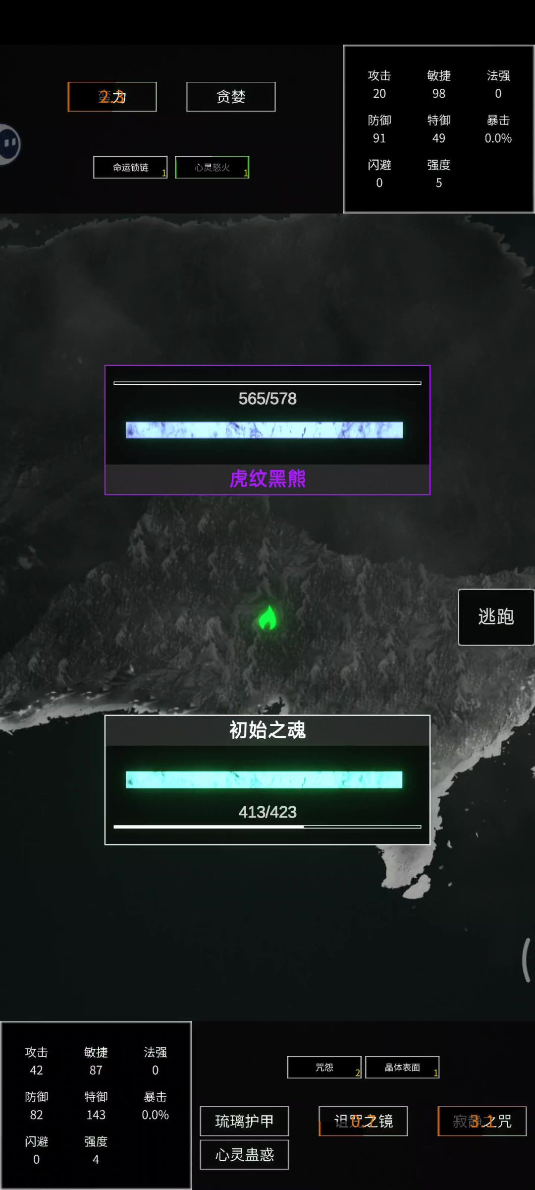 开局优先解锁魔女,用魔女+毒刺+任意(推荐生命之息)度过前期关卡(毒刺是游戏开局过度最强的没有之一)之后解锁铁壁,魔女+铁壁+毒刺(魔女一金三紫+铁壁一金+毒刺一金)直接无敌角色用幽魂骑士,属性除了生命和敏捷其余拉满,多的加敏捷(论坛有卡bug方法这里不做赘述)游戏选择(战斗>属性=资源>商店)(开局进入游戏第一次选择资源优先,如果开到装备前期会顺利很多)(属性选择特防>物防>法强>其他)(