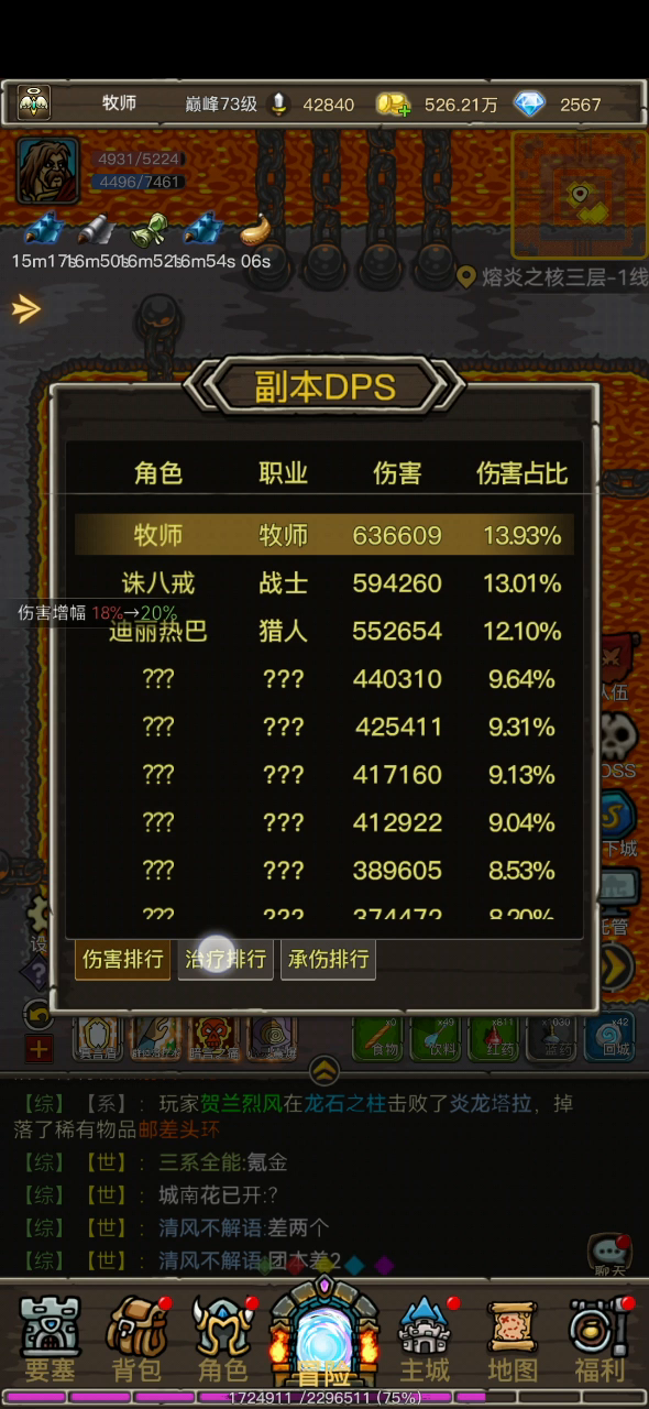 研究了打本最贴身的天赋了,乱舞实装后稳定输出,不挽留打桩,只要实用,装备凛冬和火头是打塔用的,等更新后再研究伤害增减,更新后特效伤害还是可观,我用暴击命中三特效装,输出中规中矩,没玩懂这个tap,装备我从新更个贴,输出第一的萨满是巅峰天赋点的暴击率和暴击增伤,我主要是刷金就点了金币,仅供参考,另外附魔是力量和敏捷,武器是十字军