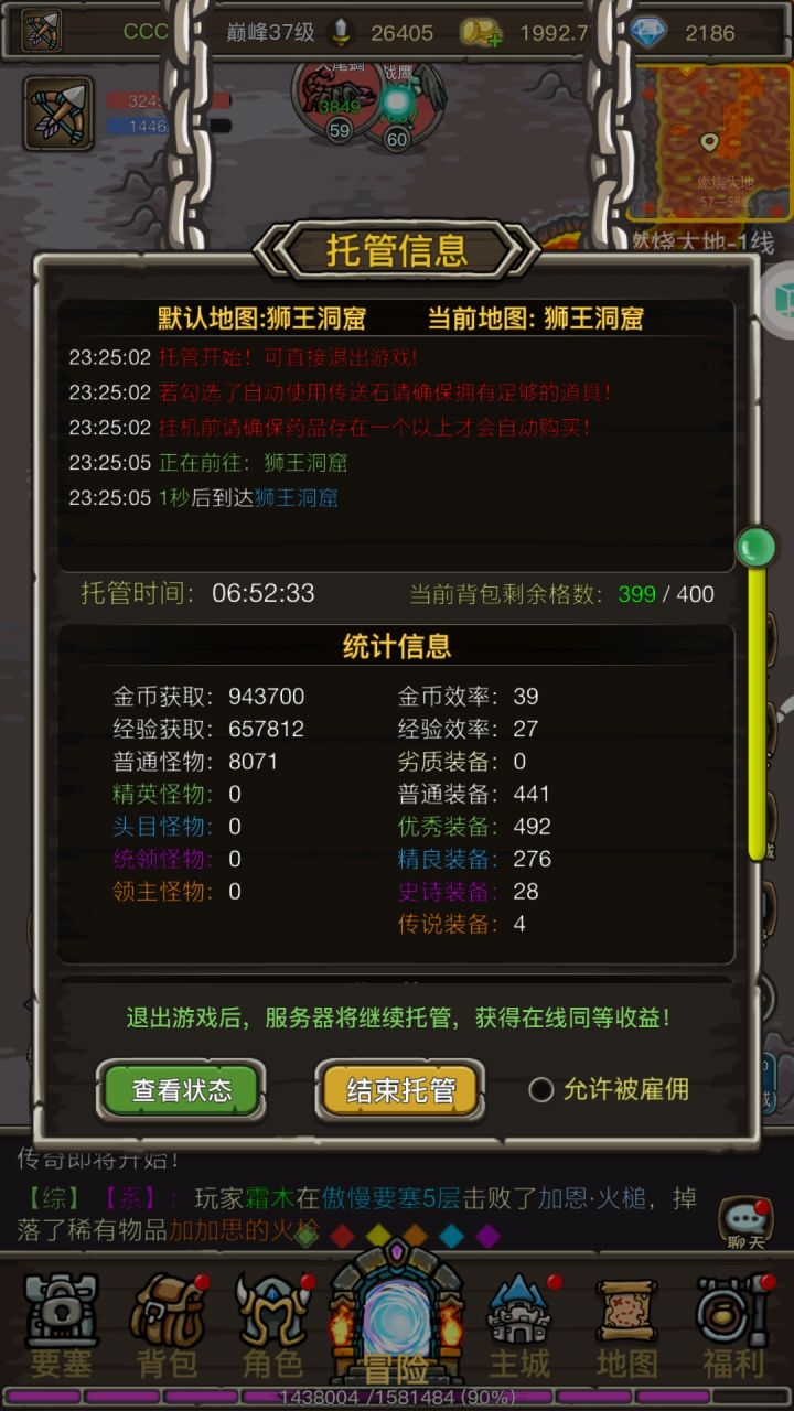 ccc打金攻略已作废1.不要组队2.要离线托管3.背包留三百个4.金币套(目前我36加成,巅峰可以点金币加成)5.boss全勾,下线前飞第一个boss挂6.猎人可以只开召唤宝宝.瞄准和法术射击,看自己回蓝情况,一晚上不耗蓝这样还没成功的说下情况,我也是失败好多次,现在每晚固定差不多挂100w,一天收入400w我的一亿就是这样攒的,要追杀我的过分了! 我造福了这么多老东西😈