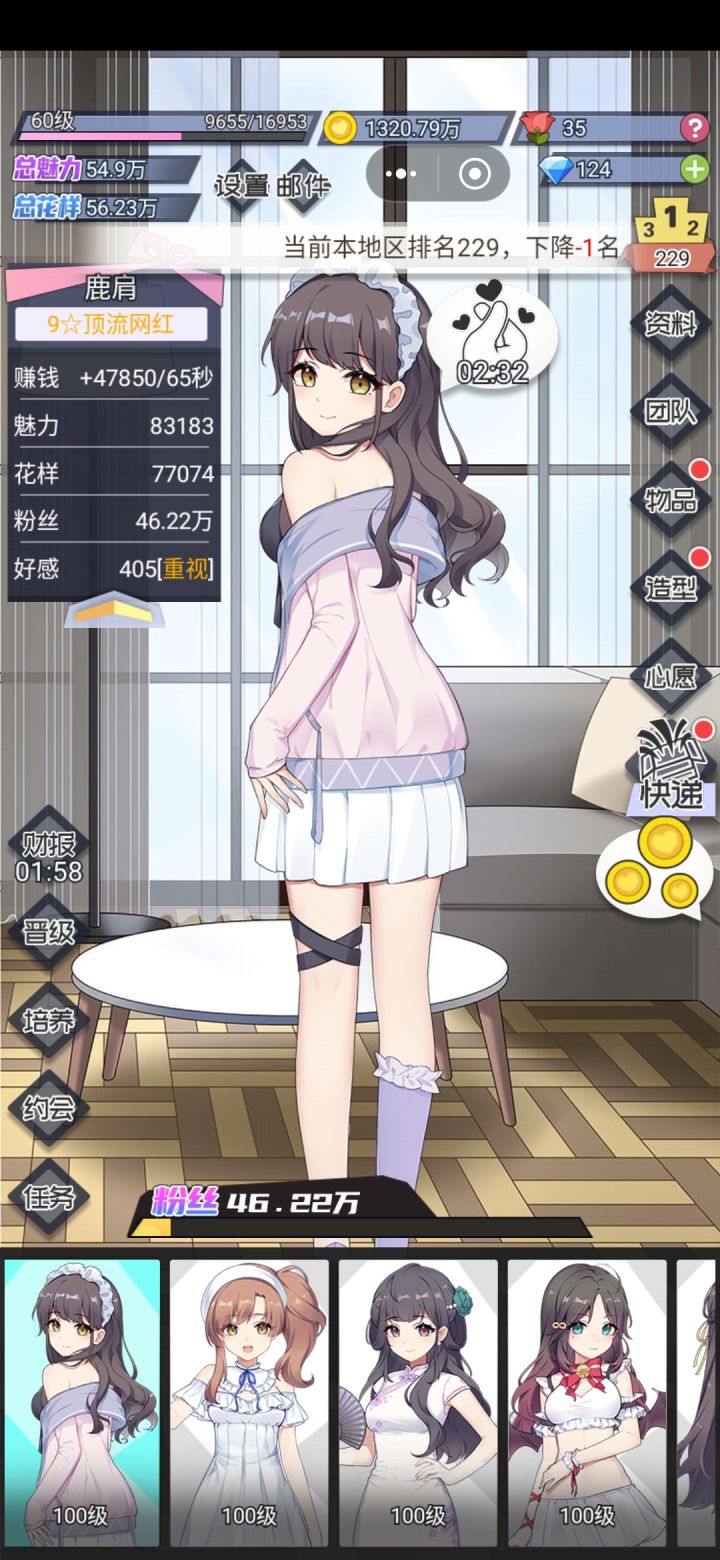 《网红女友》的所有内容就是类似七年前培养员工的放置休闲挂机,培养各种员工,为了增加二次元受众的包容程度,套上了“二次元女友养成”和恋爱的皮。核心还是古早的养成游戏,除了挂机就是看广告,已经彻底脱离当下的游戏市场。