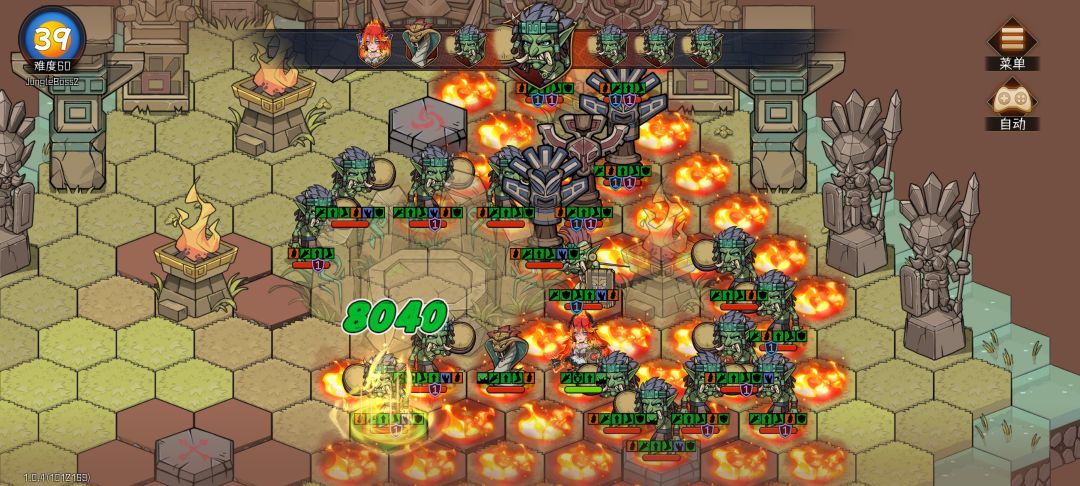 如题,一把惊心动魄酣畅淋漓sl七八次的BOSS战,非常值得分享。 阵容如图,剑圣金,奶骑绿,奶妈蓝,火法绿,天赋只有剑圣开了个无视阻挡,没金武,没圣物 难点:1.主要的克制点在于,BOSS每回合给所有小怪补齐两个盾各一点且不断强化,这严重拉低了破盾依赖技能的剑圣和火法的清怪效率,又不得不清。 2.火法忘了换技能,带的两个4cd强化和陨石,没有巨火球,百万血BOSS刮不动。 3.锤子叔和叉子哥会打断