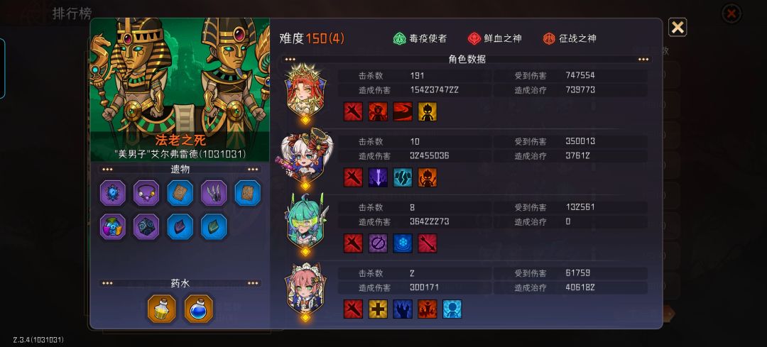 遗物比较差没有金,不然可以两回合内带走,药水也差没有任何伤害加成,就这样捡破烂都可以稳过150全抢,帝弓无限火力这赛季确实有一定实力的 探索新的搭配,把震荡波剑盾换成了缴械帝刺,可以连控BOSS,对BOSS关有较大的提升,但在道中没有剑盾那么无脑挂机舒服,有需要了解详情的,可以点进下面攻略关注我之前的无限火力纯粹流攻略。