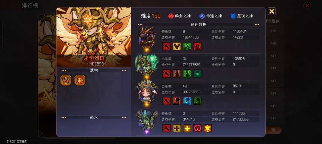 我看还没人在活动发攻略,就来活跃活跃~~~ (只提供参考,不是最好的[表情_吃瓜]) 我资源少无法像大佬们变换阵容,最多以原阵容换个主C或辅助[表情_豹哭] 现在用的是掉落的普通装备强化,常规的阵容套路。等150出来后慢慢冲层,冲到150这赛季就躺平了。没有大佬们的毅力和技术玩神罚150[表情_捂脸哭] 这赛季玩召唤不错又轻松,主C蓄力旋风斩也试过启动慢不好玩。有暗刺0命一直放仓库,宝宝弓3命后面