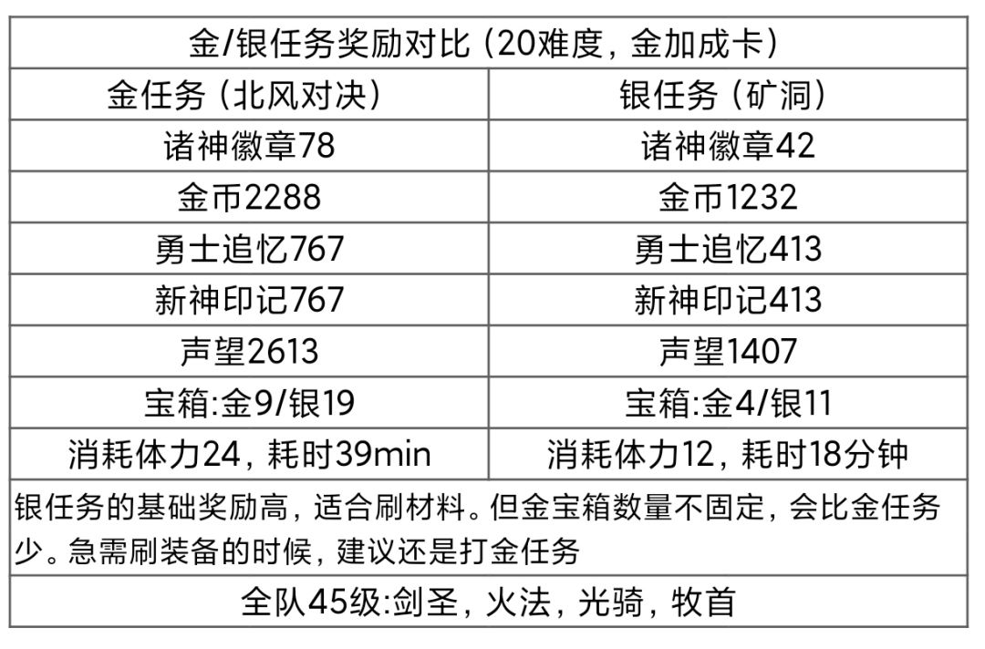 20难度下,对比用金卡后的金/银任务奖励,银任务的基础奖励多些,且更好打,但金宝箱数量不固定。建议按需求刷任务。