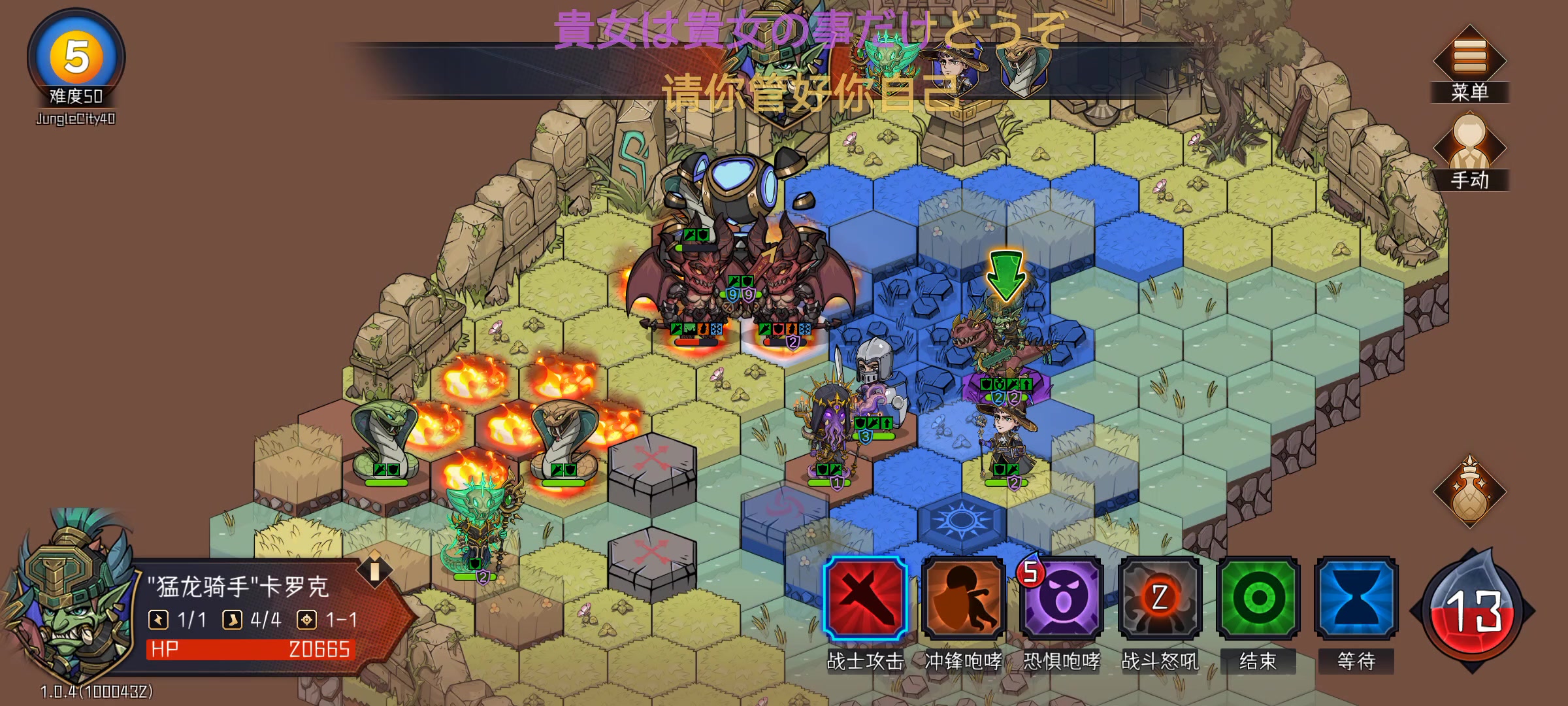 这玩意挺难打的,不过只要前排抗住还是能打的,但是80难以上就跑吧,这局词条是自爆复仇+啥来着反正没有加伤甚至自爆复仇俩废词条我才打,遇到连击法强啥的词条直接退不要犹豫 站位如下,巨盾群山套嘲讽,虽然暴君不吃但是不重要,暴君一般不会跑,杜鹃召唤物从左边走上去不要直接召唤脸上容易ot,刺客像这样跳进去a一下就溜,圣骑一回合抬到2紫盾,好像没紫盾直接a暴君的吸血量和有紫盾穿盾伤的吸血量完全不同,反正两次