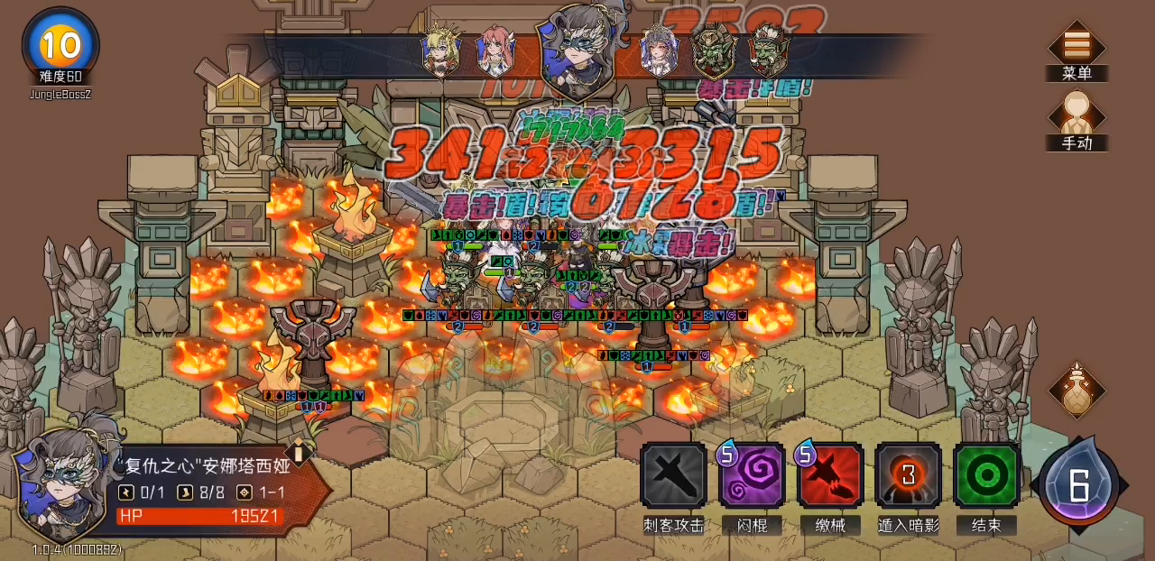 这是一篇半攻略向的新手帖子。专门给那些刚入坑的玩家看的。绝对能少走很多弯路。 目前打57难,差不多每个节点的精英关开局还没动就得减员一个,不是奶骑就是火法被秒了,是不是仇恨设定上有些问题?火法站最后且隐身状态都能被当成第一目标且远距离狙杀。无视站最前的奶骑和旁边的暗刺。[表情_豹哭] 重开后,利用手操走位和图腾之力终于把57难过去了,需要还是有角色阵亡但好歹能过,把这个通关后终于闪避刺练够级出场了