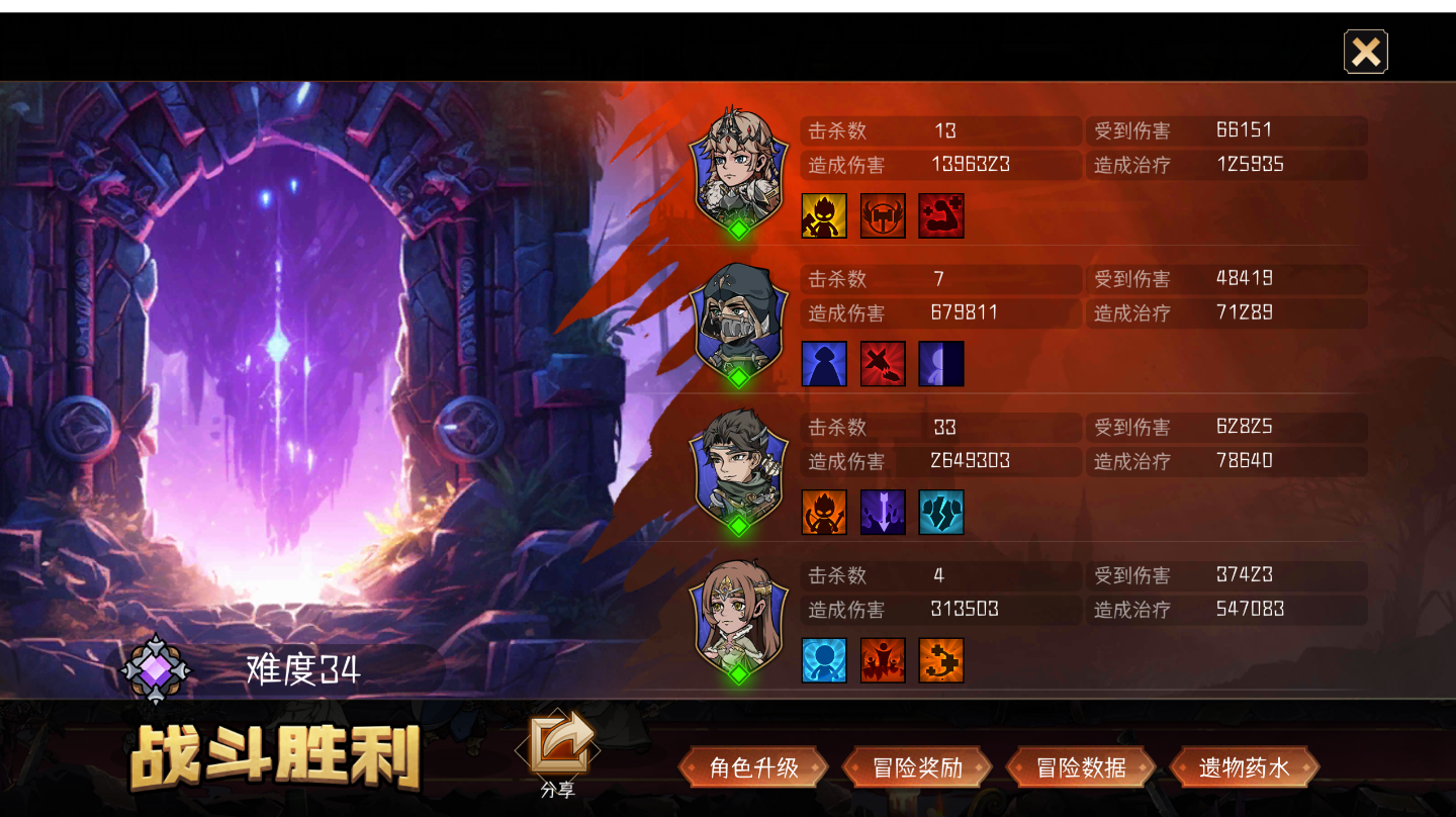[表情_流口水]发现神圣伤害会被魔盾挡,那不就简单了,无意发现圣疗有净化,dot伤害也不怕了[表情_大笑],轻轻松松拿下,冰墙也很关键,防止boss乱跳,虽然开局boss位置有点靠前我还没跑进角落就已经跳进来了,理想站位只有两个角色会被攻击到,骑有圣疗净化所以无压力一直扛着就行,另外npc和刺客轮流抗就好了,最后还有冰墙保底[表情_酷]