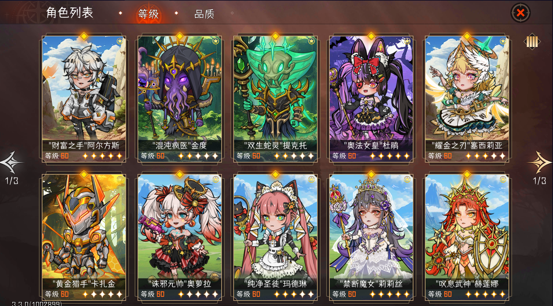原本是内测叫不知道什么名字的肉鸽游戏(好像是这个名字)的时候玩的,开服的时候完了一段时间。听说了细胞和游戏要暂时停的消息,挺喜欢这款游戏的,算是很良心的游戏了,所以想着回游。看了点大佬们鳄炮和杜鹃的攻略,稍微小氪了点抽了现在这些角色。现在还是用的剑圣这套阵容用的老装备在50层刷装备,想着问问大佬们有什么配队建议,以及优先补那个角色的转职数。之前玩的时候都是低难度玩的,现在想打打难度上去试试,目标