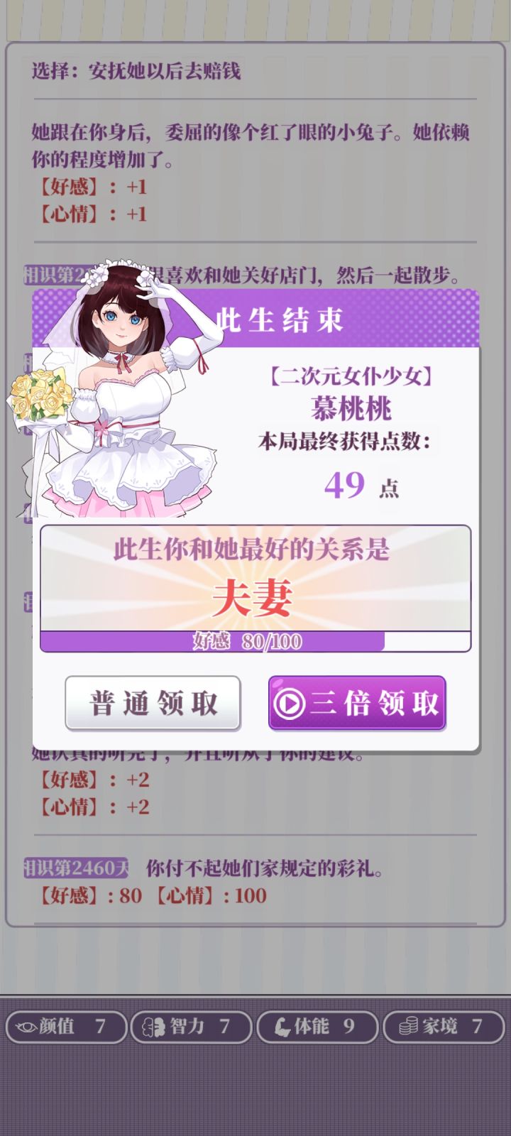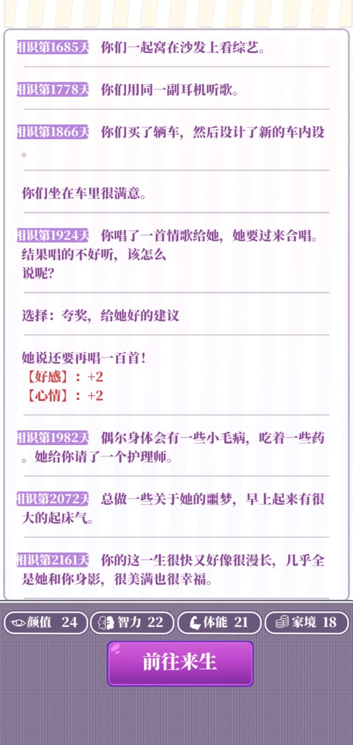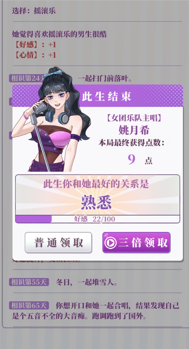 属性:推荐属性全部20以上(基础属性+分配属性+天赋这些加起来够就行)天赋:几乎没用,不怕辣的天赋会被辣死,唱歌厉害的属性会被嫌弃唱歌不好(不用执着于刷红天赋,就算刷到了,你运气不好半路嘎了也白搭,不如带着普通天赋多打几局)部分选项:一些选项两个都扣属性就比如画大饼和付出实际行动,或是乞丐说你们会在一起和暴富,只能自认倒霉多刷一下。广告:开局平均没2到3把就可以去属性强化那看有没有经验礼包,