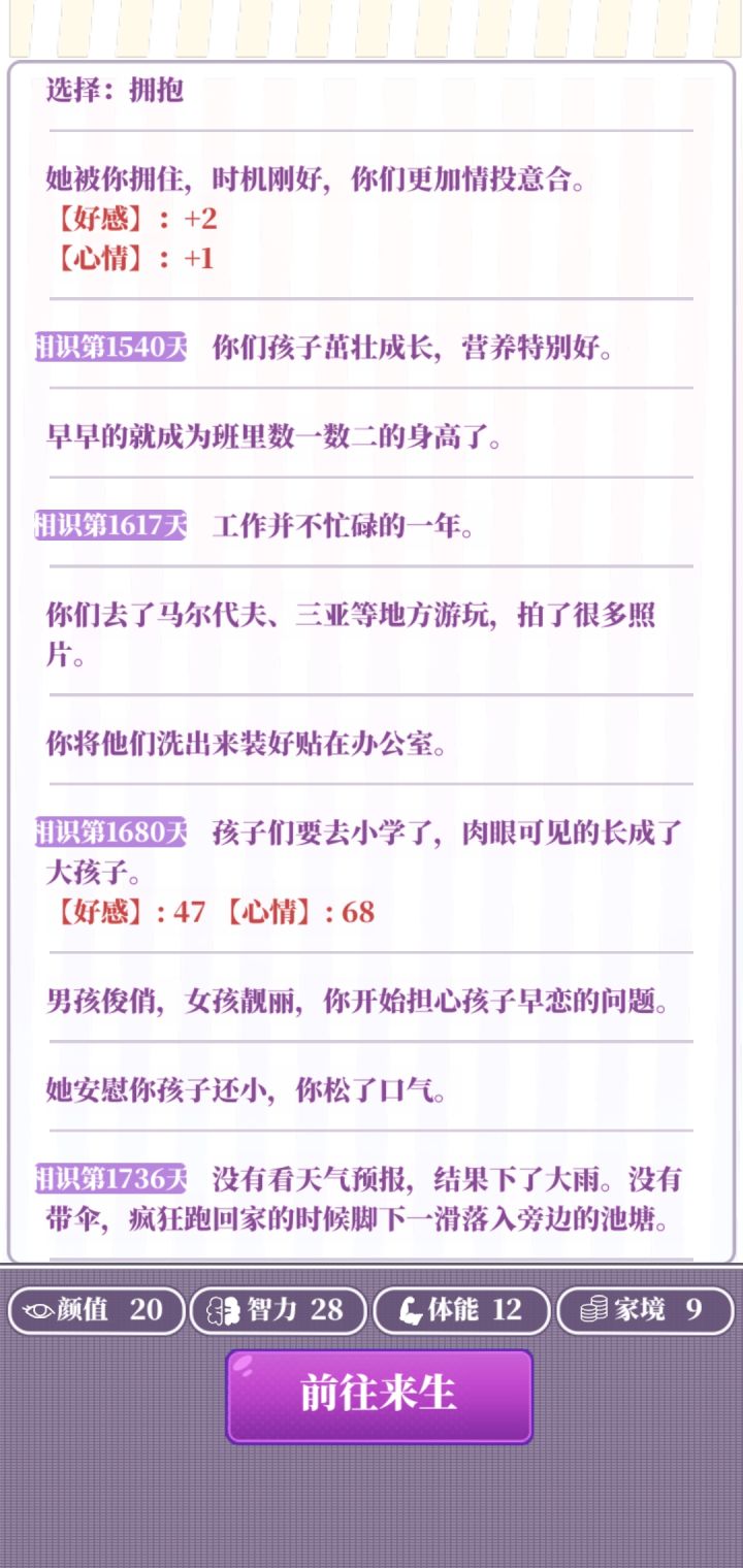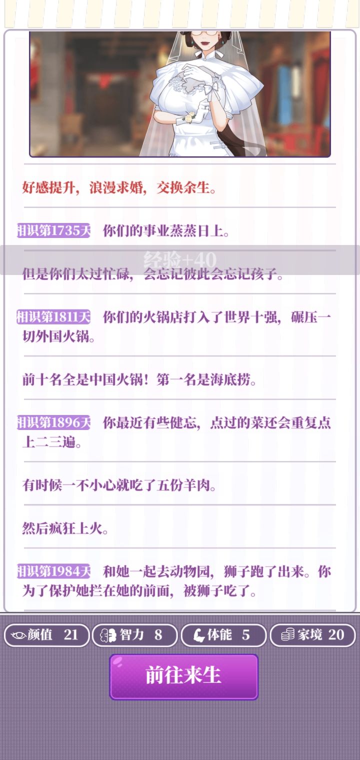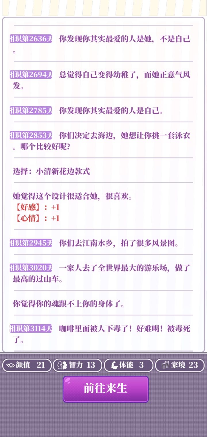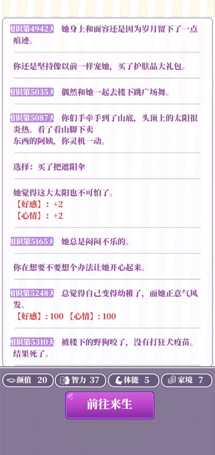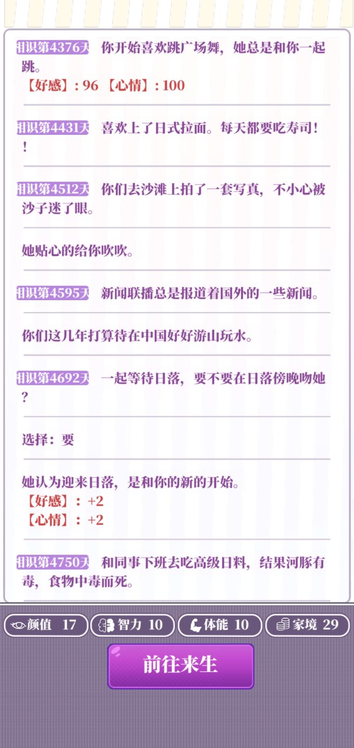 属性:推荐属性全部20以上(基础属性+分配属性+天赋这些加起来够就行)天赋:几乎没用,不怕辣的天赋会被辣死,唱歌厉害的属性会被嫌弃唱歌不好(不用执着于刷红天赋,就算刷到了,你运气不好半路嘎了也白搭,不如带着普通天赋多打几局)部分选项:一些选项两个都扣属性就比如画大饼和付出实际行动,或是乞丐说你们会在一起和暴富,只能自认倒霉多刷一下。广告:开局平均没2到3把就可以去属性强化那看有没有经验礼包,