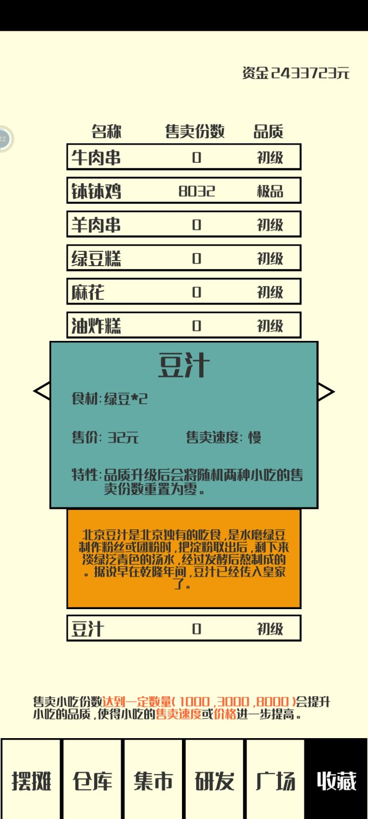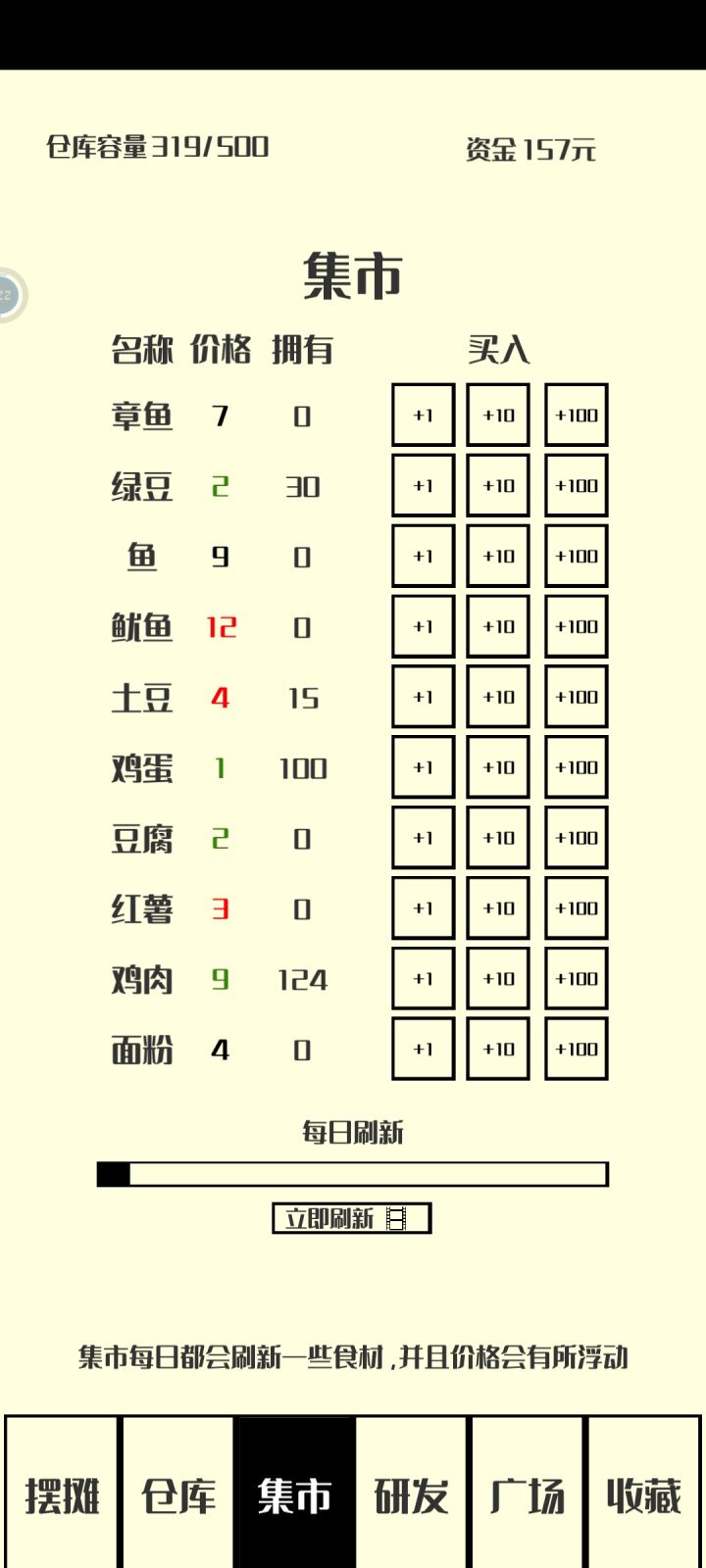 还没升级,仅仅在上架下架操作后就会重置其他小吃的售卖数量。