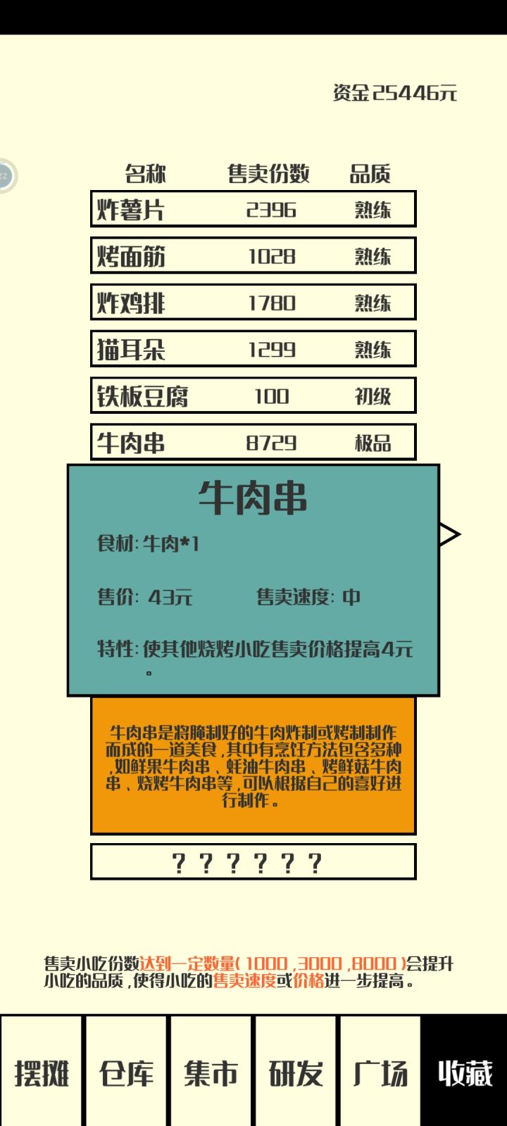 感觉不是很平衡啊,开了牛肉串之后就没有发现比他更赚钱的。研发新菜和连携特性就没意义了啊😅