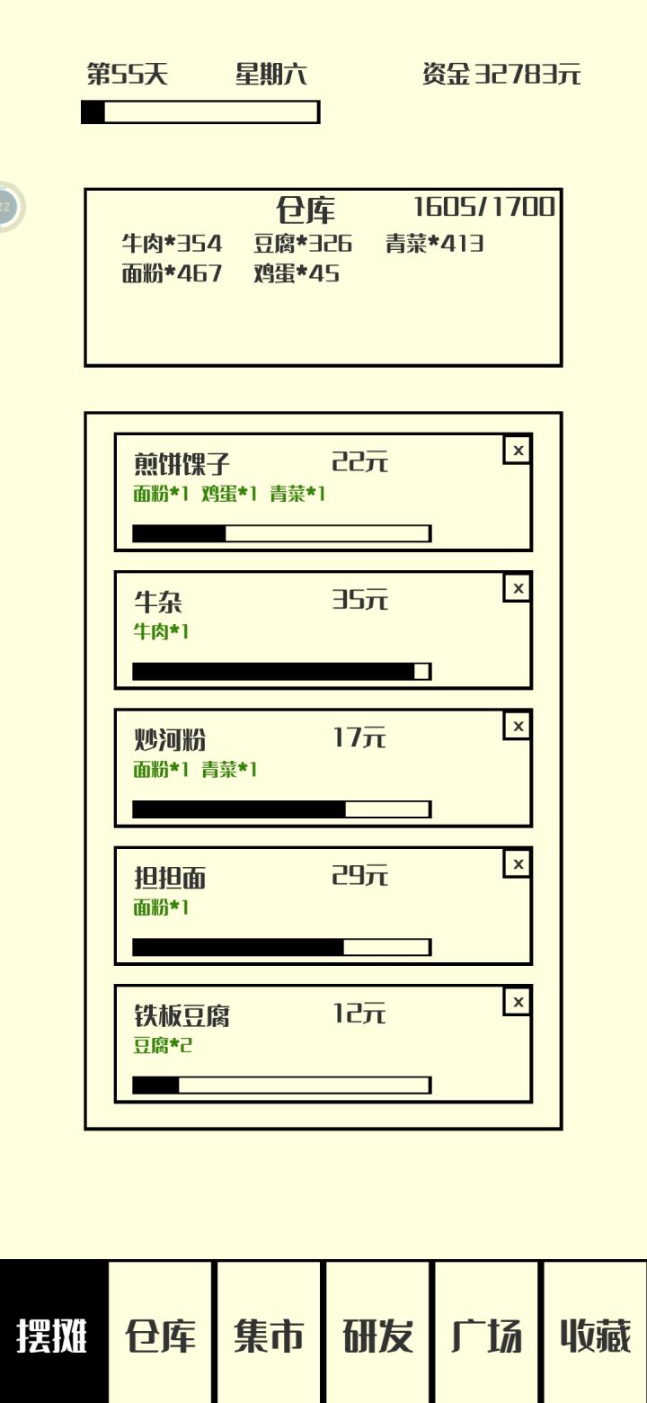 还没升级,仅仅在上架下架操作后就会重置其他小吃的售卖数量。