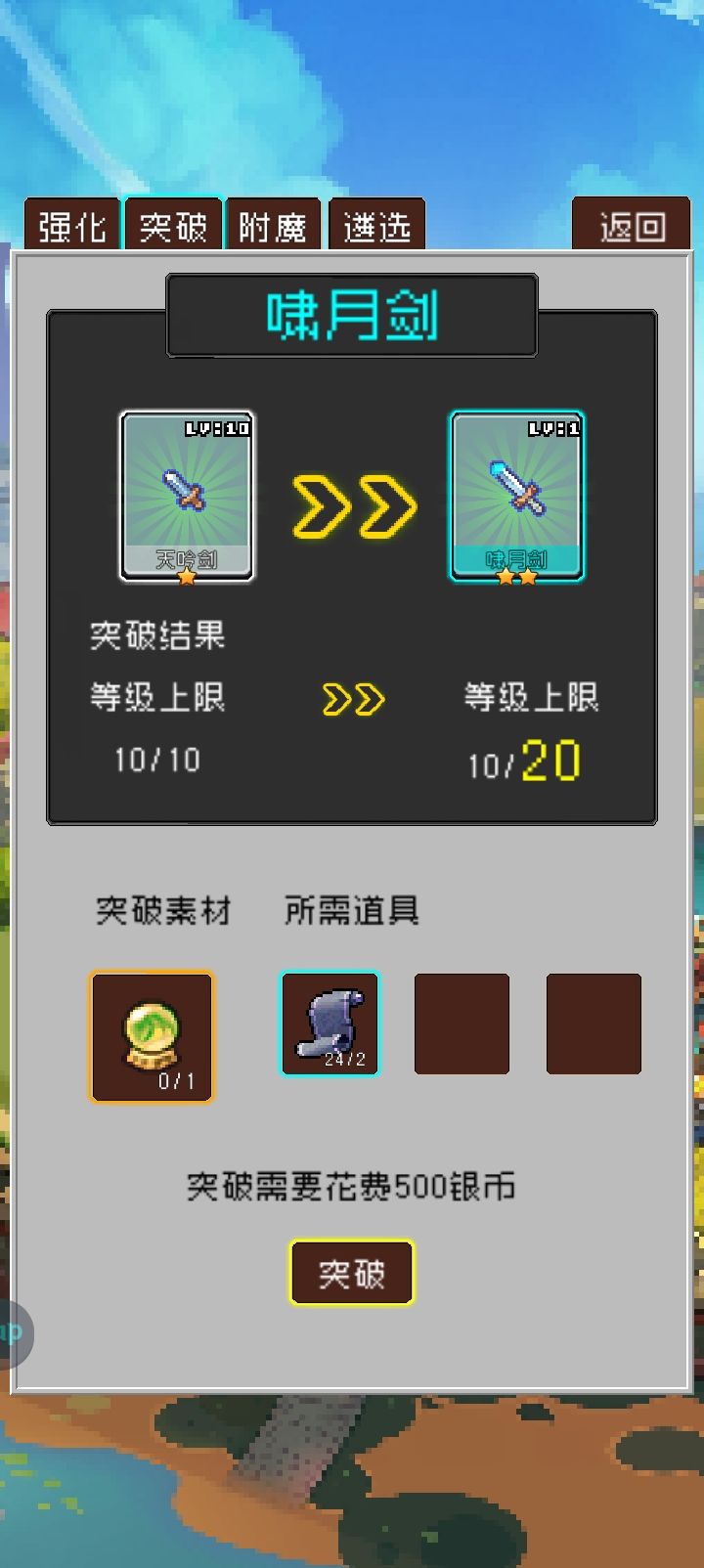 谁知道装备怎么突破啊,老是显示材料不足,不知道材料怎么来