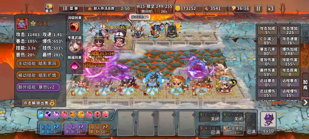 光看图不能咋样,自己看视频吧,个人感觉还算丝滑吧(能喷的也就是不来气定),好不容易凑一把成型,也就400关,没有攻击和攻距加成就别死命玩这一套了。不如把赵云换成老牛安稳。讲道理,属性加满爱玩啥玩啥(是不是看不起持国,为什么没人玩),但是当前版本索然无味。 论坛看不到人了,就打一把供大家消遣。(肝氪水佬勿扰)
