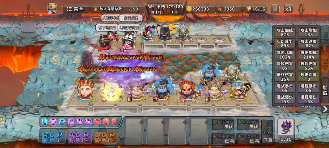 大家是不是已经对现在世面上墨守成规的塔防游戏失去了一些兴趣,单机加塔防逐渐演变成一种半挂机类的游戏,今天说一个小工作室出品的半挂机游戏,神仙打架。 在今年八月的时候我安利过这个游戏,当时说他玩法新奇,算是固有塔防游戏中的一抹新色彩。 九月份改版以来,我们可以看到这款游戏降低了大家都在吐槽的难度。他降难度主要体现在起始金币数目的提高,还有boss血条的降低。 该游戏的厂商在九月,依旧延续了游戏体验过程中不插入广告的模式,所以在大家玩的过程中还是很值得的。 根据更新内容,我们看到了新人物马超黄忠,以及新组合五虎上将,但是构成难度过大,在九个位点中凑出的概率极低,作用效果只能说是极其不佳。 除了游戏内核的更新外,游戏还为英雄推出了皮肤,并加入了专属武器,这其实是为部分看广告的玩家增加体验感,作为玩家还算可以接受。 在这里,我对游戏中玩法和它所承载的消磨时间的能力,还是能对他报以肯定的态度,但是新版本开始,这个游戏的走向还是会向着不断植入广告的方向发展,但是可以白嫖一个内容设定极具新意的游戏,我觉得还是可以的,当然这也仅代表我个人观点。