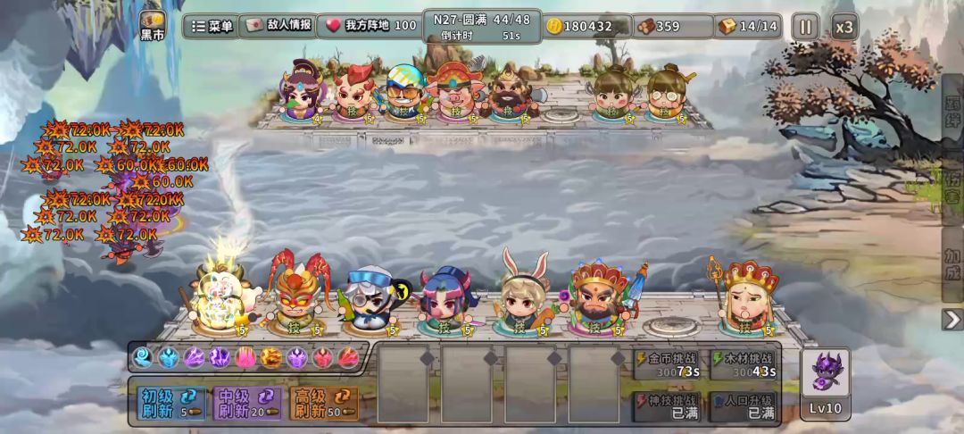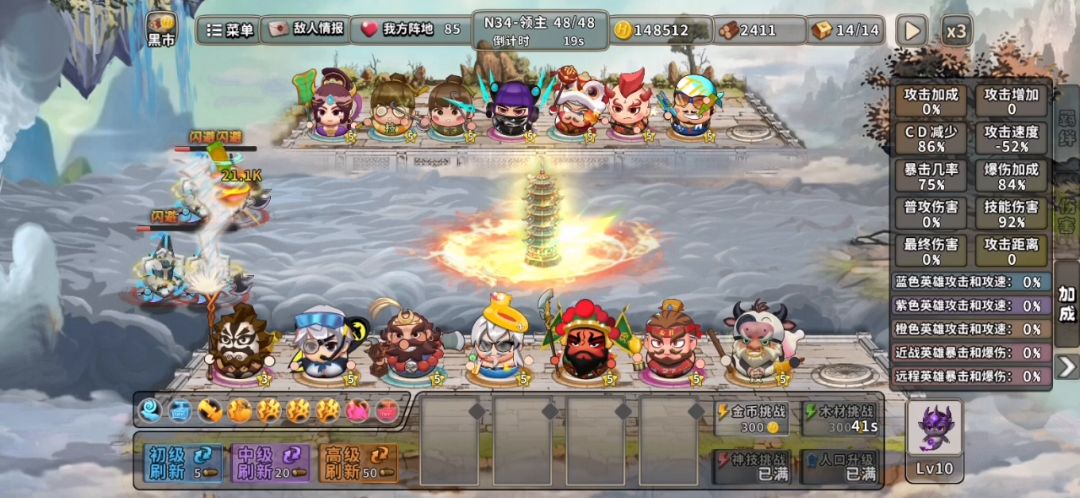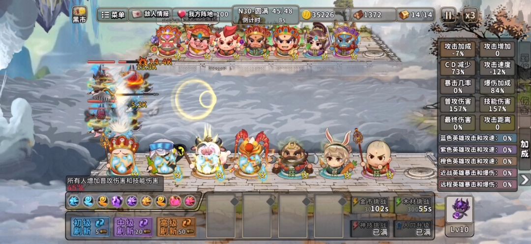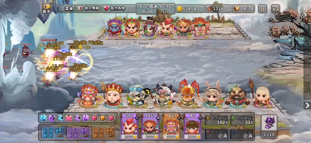 全程不存钱,只管D卡。金扎 木扎优先5星。 全程可以不用理财。 (沙悟净跟铁扇公主放前面放技能,可以给猴子跟牛加属性) 天赋:后面猴子跟牛洗出溅射就行了,3级就够用了。 其他英雄可以不用洗,或者洗点眩晕。 神技:要求不大,基本有啥拿啥。普攻伤害多拿点就行了。 目前牛10级猴子11级,已无伤过N30