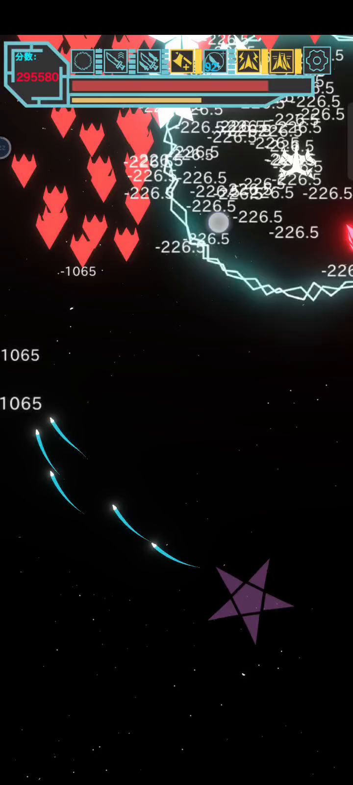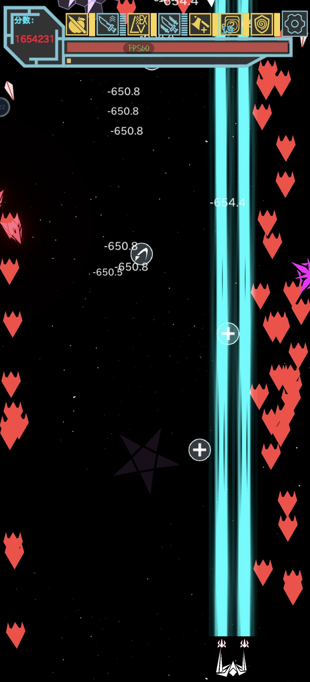 碎片,散弹,导弹,叠加攻击,增加攻击 剩下一个随意,可以拿闪避 满级后每升一级都有(提分)(导弹支援)(恢复) 三个选项,开个连点器只点提分,挂一晚上睡醒还在刷 轻轻松松破100w分