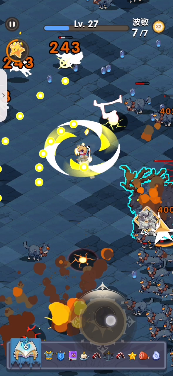 关于开荒的一点心得简单分享下,之前一直觉得高输出技能用处最大(比如激光,射线),后来发击退效果的技能才是必备,因为范围大,能保命,比如手里剑,巨浪,高输出我认为可以没有,只要能推人保命,范围大,慢慢磨死第七个boss即可。