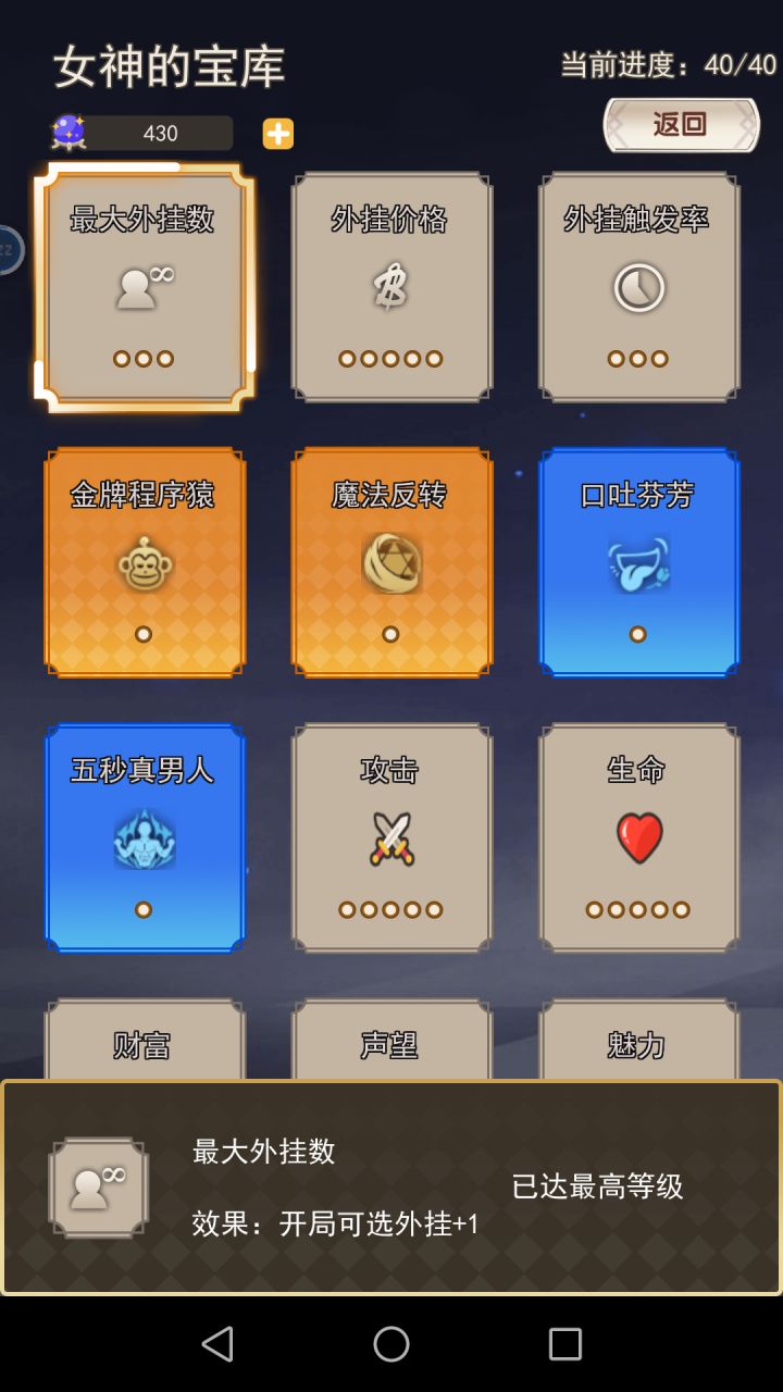③声望、魅力、金钱:建议集中培养一种(推荐声望、比魅力和金钱好堆太多。开宝箱时主意了,并不是看广告全选最好,如果你