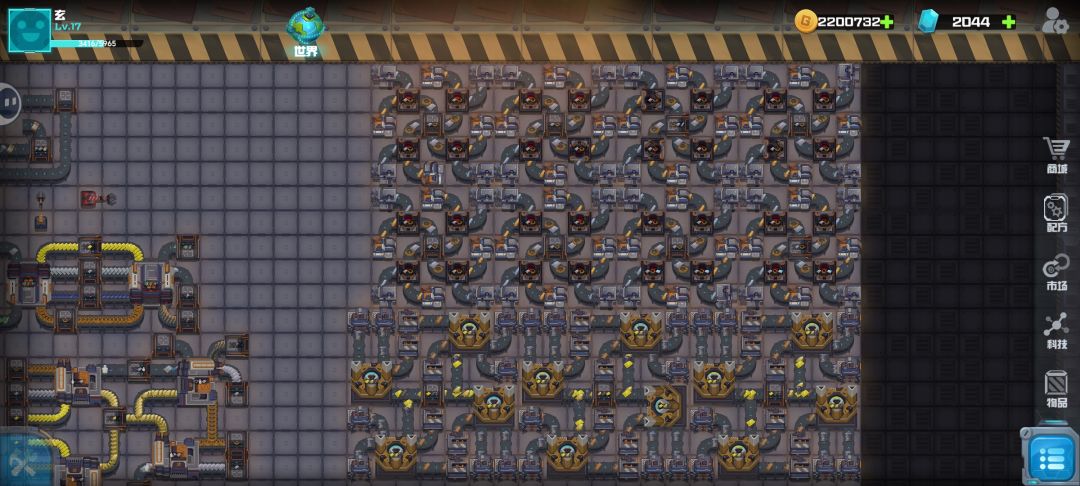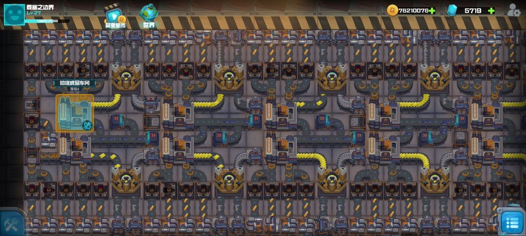 前两天研发好燃料了,磨了两天才磨出来,做出来几乎铺满4/3的空间了。挂机3个钟,有调整的空间。 最上面一排绝缘线模块,4级化工厂和初级车车间,带一组4级铜矿,效率和空间拉的极高了,塑料片富余极少,基本平衡。 右侧绝缘线下来是4组电路板生产模块,效率没拉满,控制下产量,别浪费绝缘线。 左侧的是4级电池的产线,开的是三组高效电池产线,我做的只有2组硫酸模块,有不足,需要再增加一组。 中间是三个